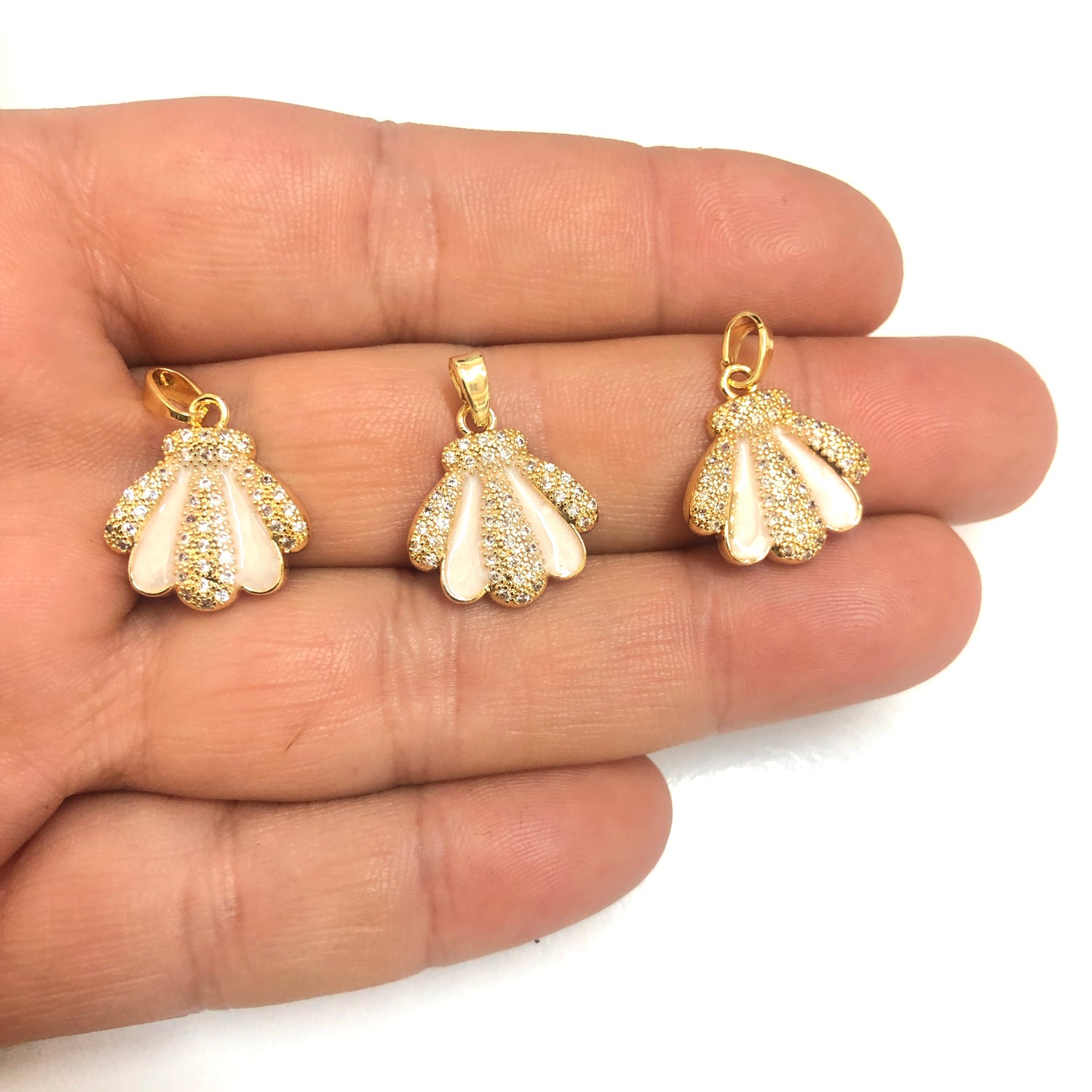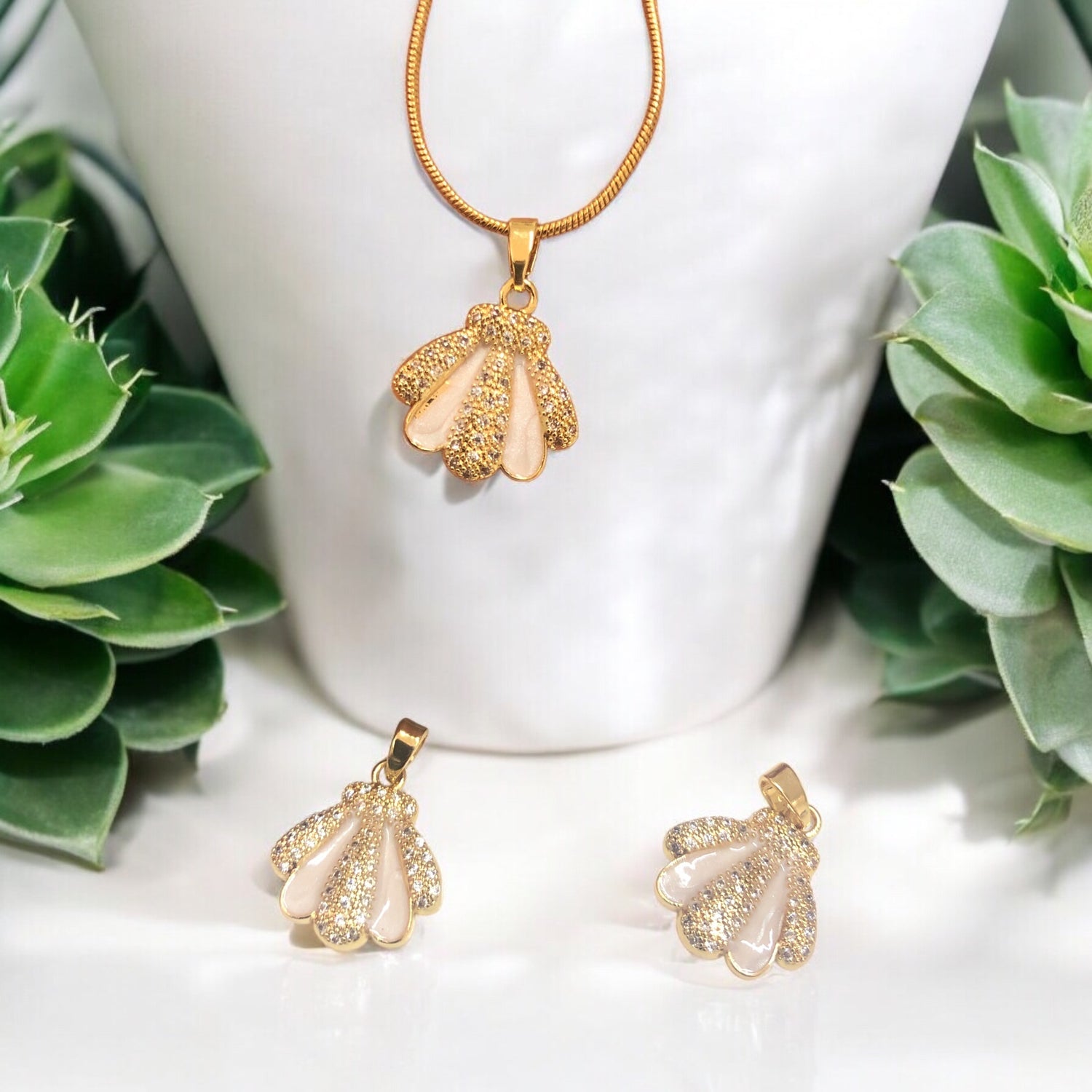 Altın Kaplama Mineli &Zirkon Taşlı istiridye Kolye Ucu