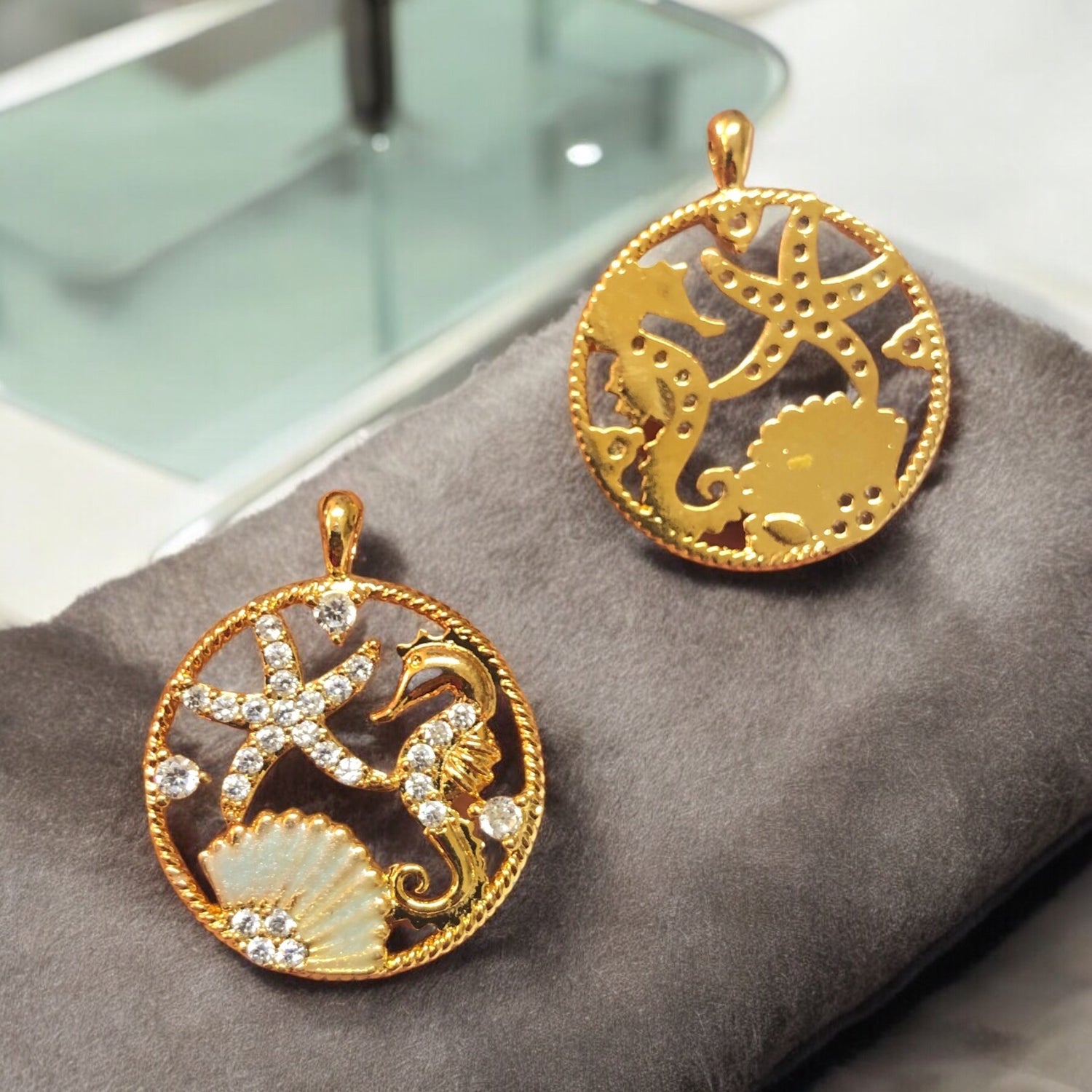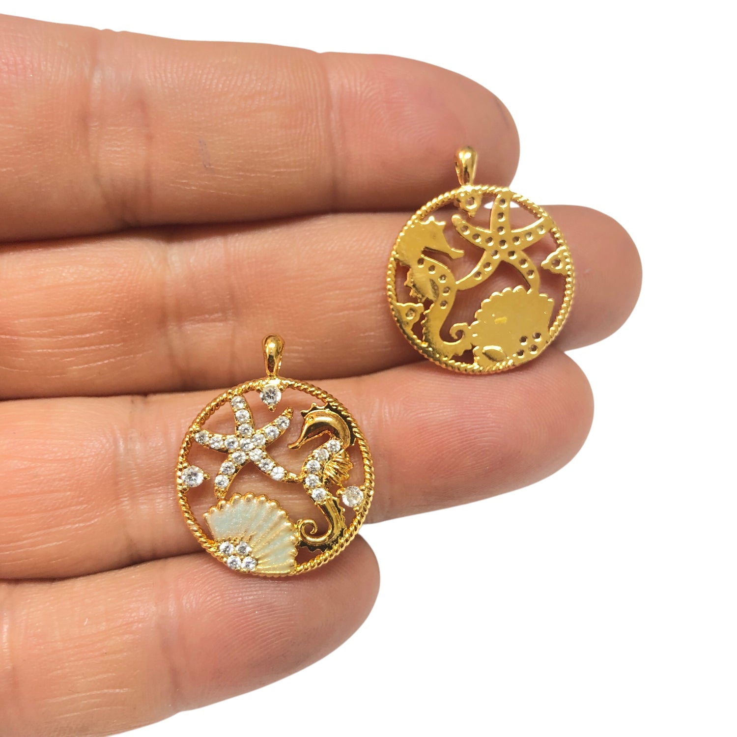 Altın Kaplama Zirkon Taşlı Deniz Dünyası Kolye Ucu-Mint