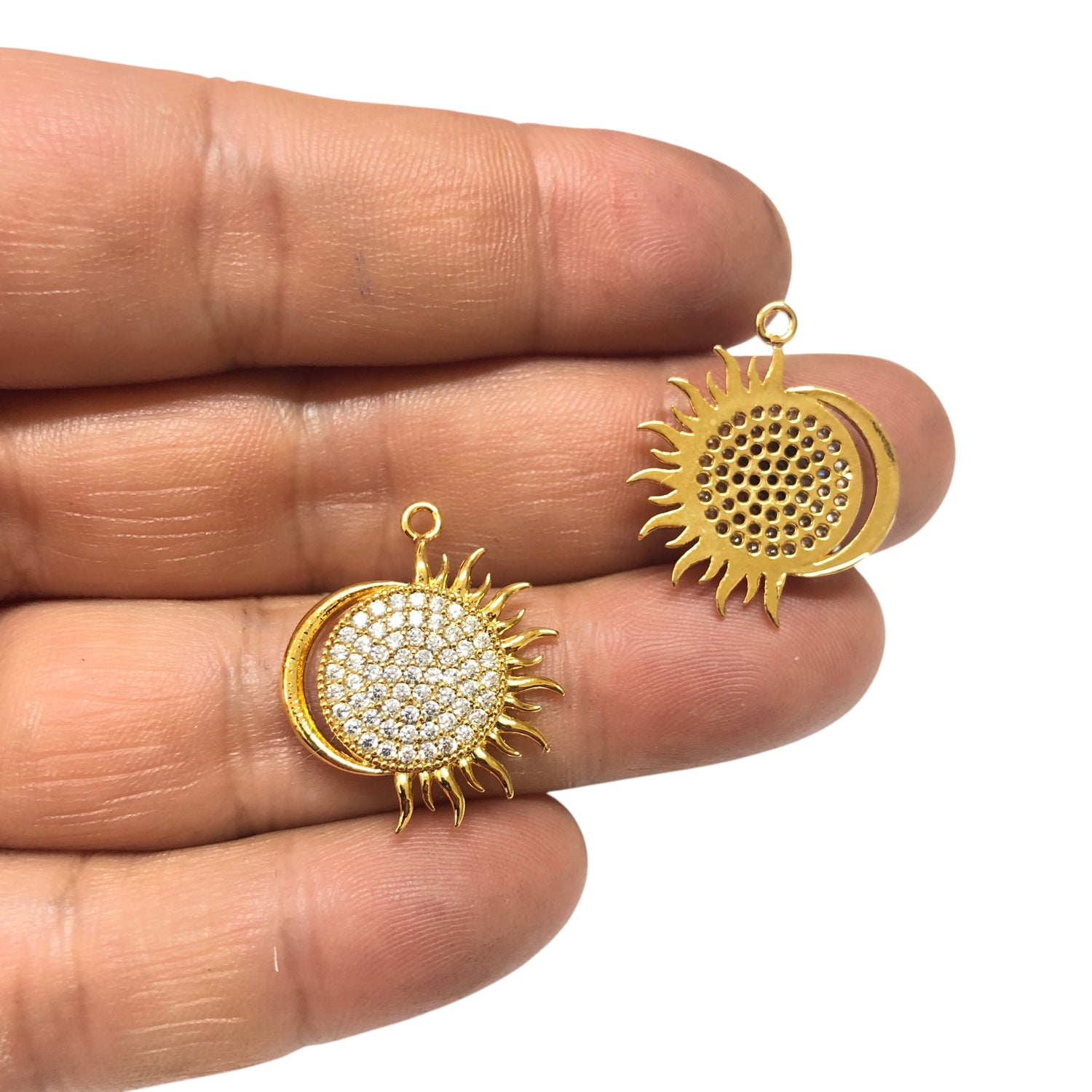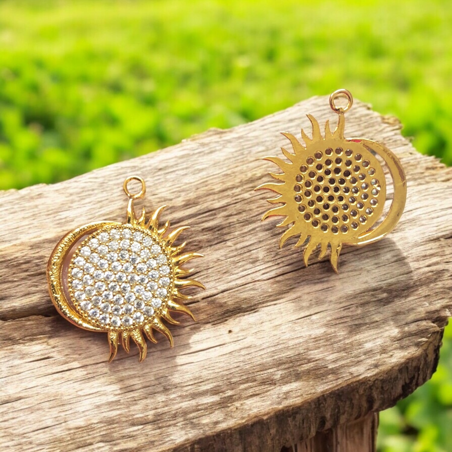 Altın Kaplama Zirkon Taşlı Güneş & Ay Kolye Ucu-2