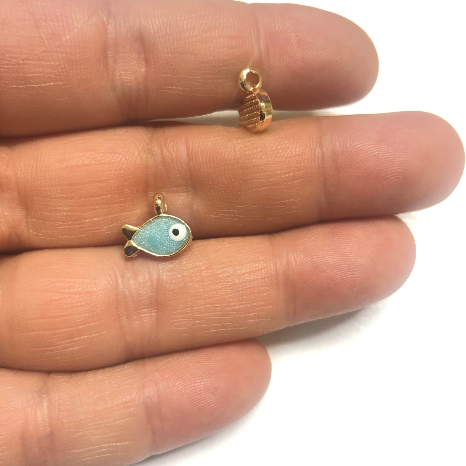 Altın Kaplama Mineli Küçük Balık Sallantı - Sedefli Turkuaz