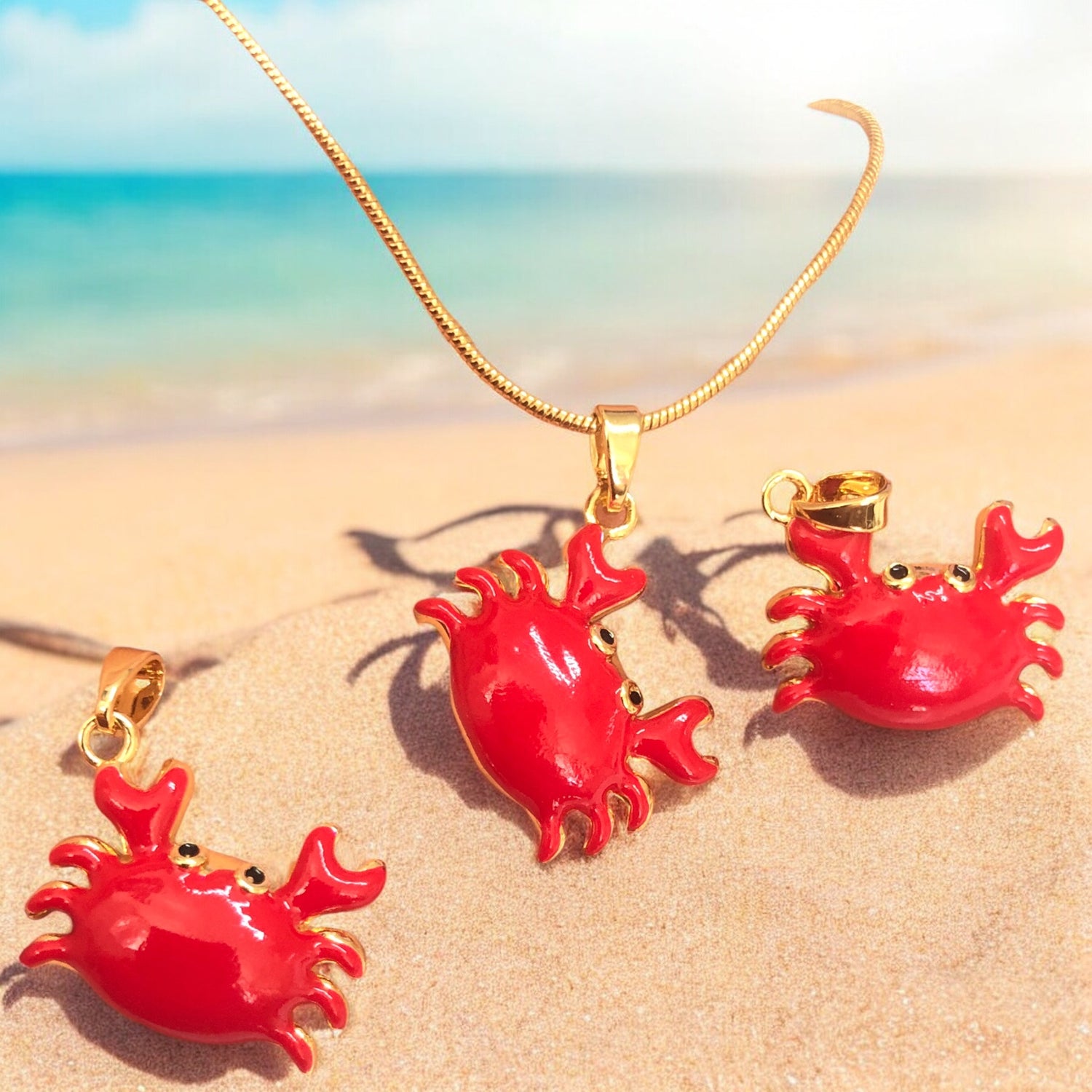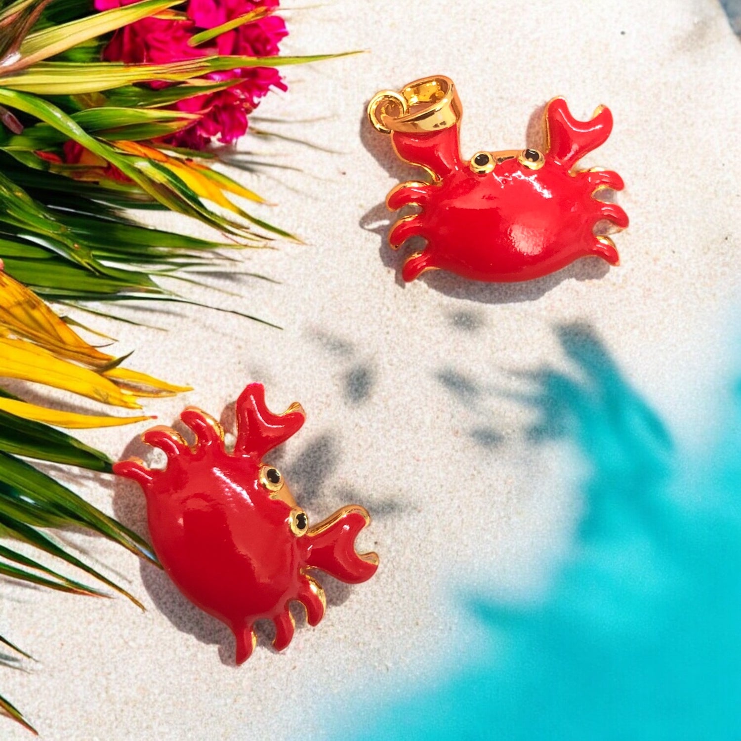 Altın Kaplama Mineli Yengeç Kolye Ucu -Kırmızı