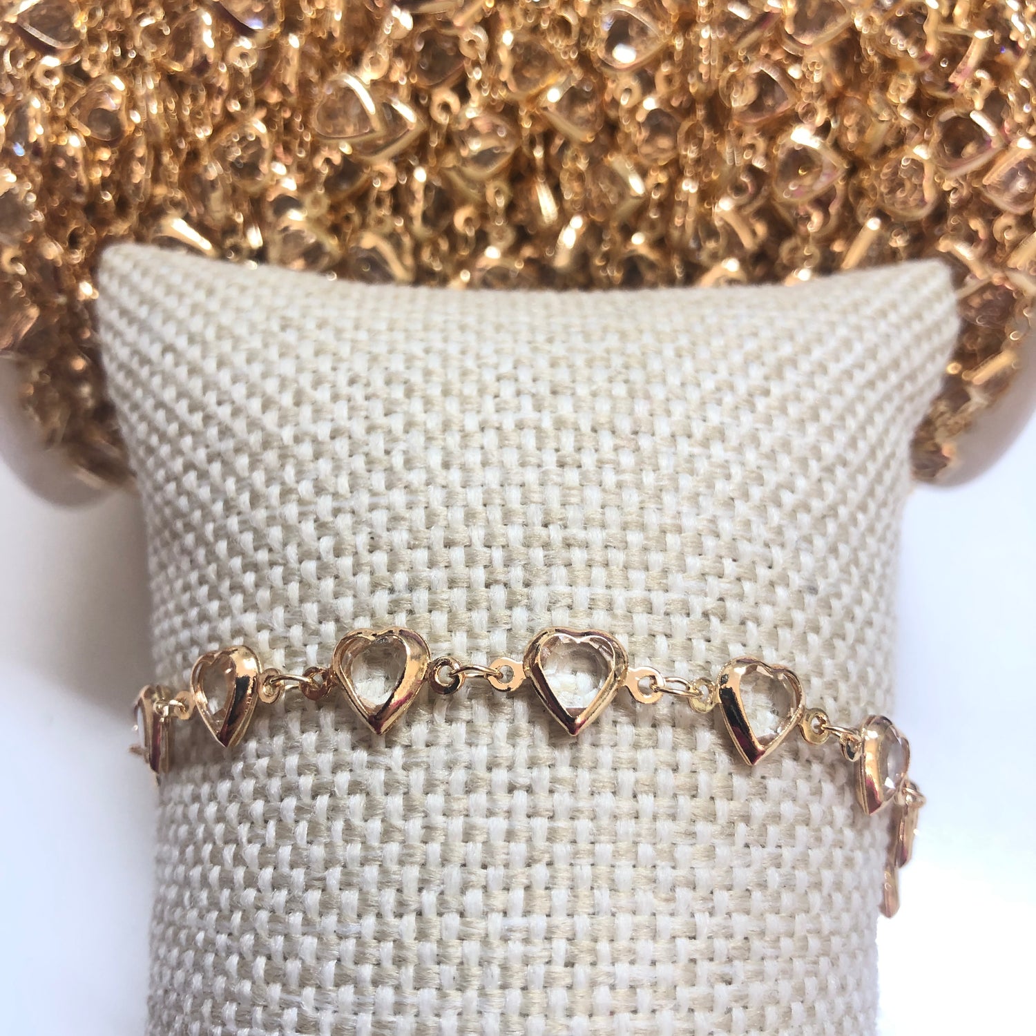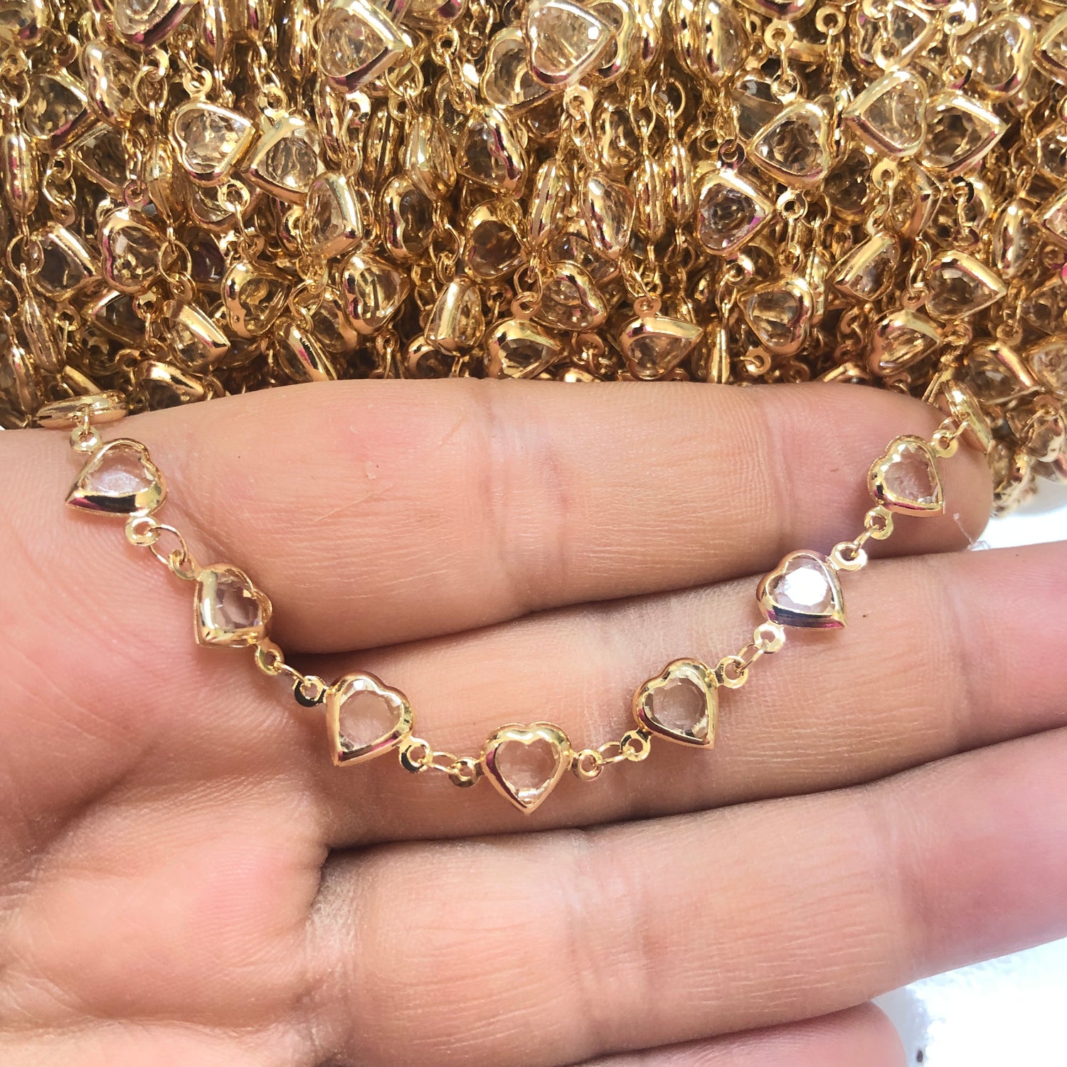 Altın Kaplama Kalp Taşlı Zincir Yan Delikli - Şeffaf