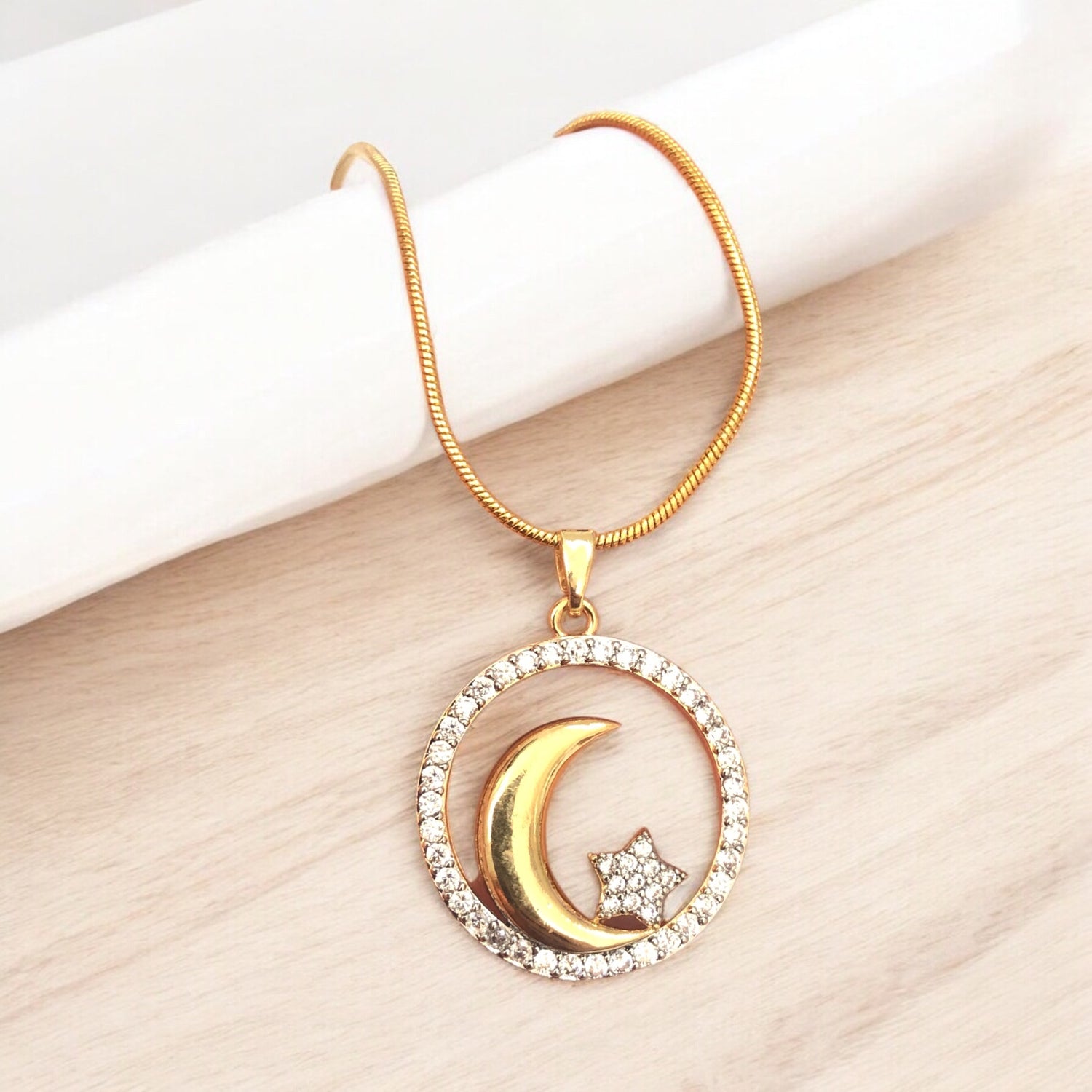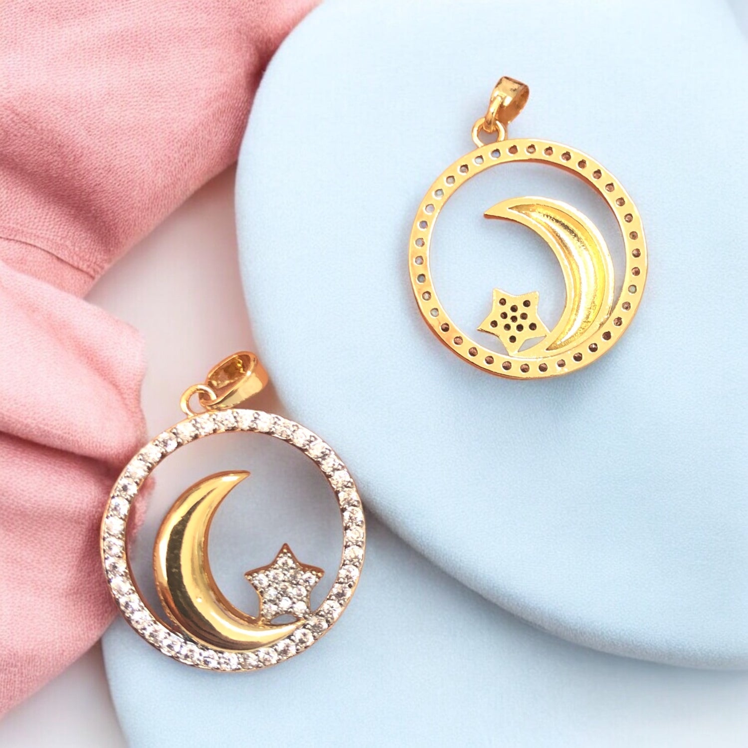 Altın Kaplama Zirkon Taşlı Ay Yıldız Kolye Ucu