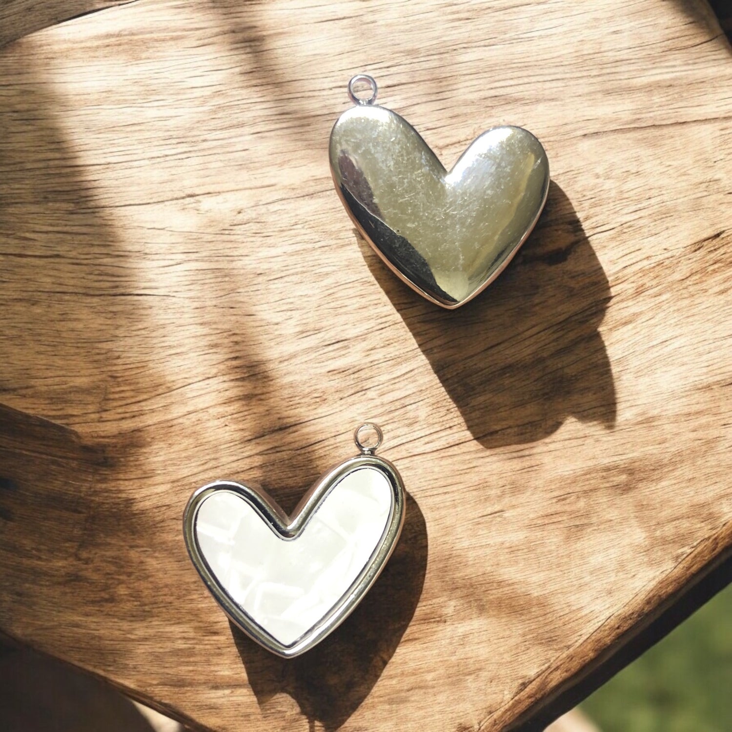 Çelik Sedef Taşlı Kalp Kolye Ucu-20mm