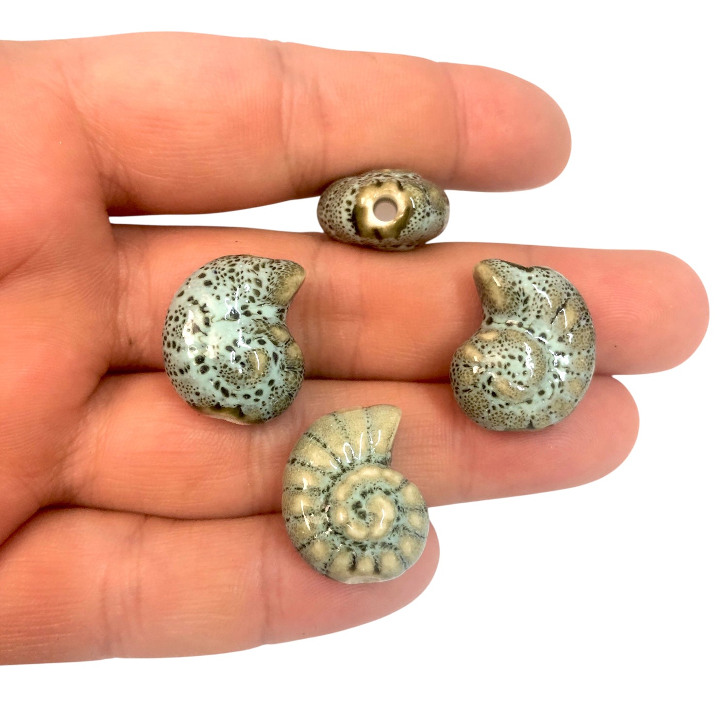 Seramik Salyangoz Büyük Boy - Benekli Su yeşili