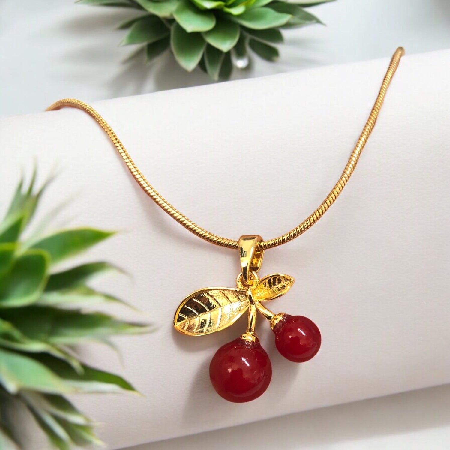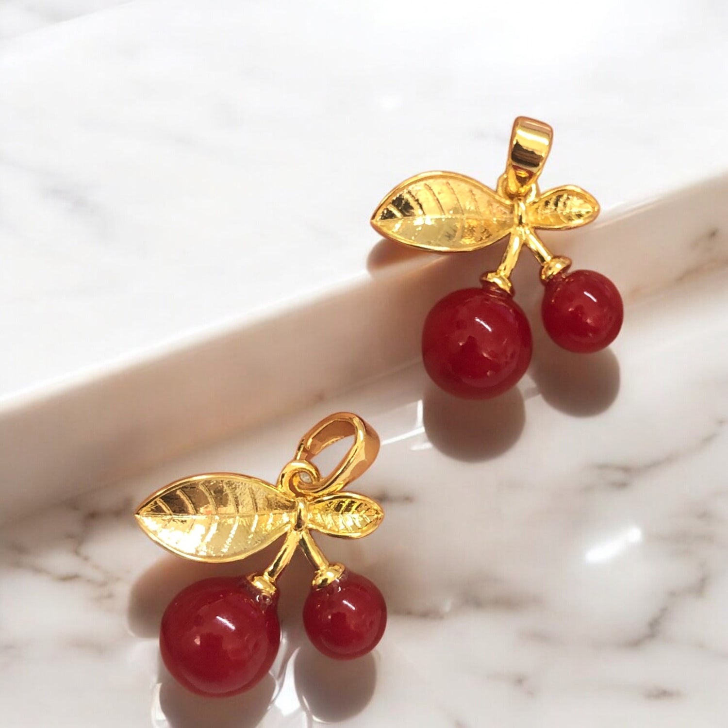 Altın Kaplama Çift Yapraklı Kiraz Kolye Ucu