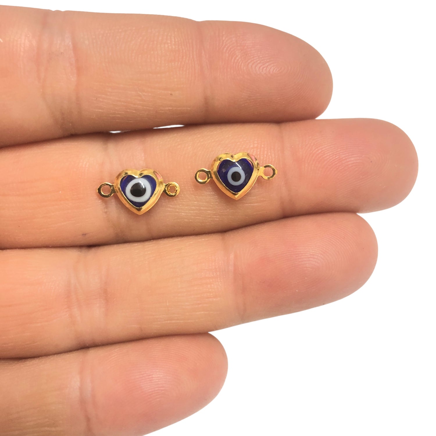 Altın Kaplama Kalp Beyaz Nazar Bileklik Aparatı Yan Delik - Lacivert