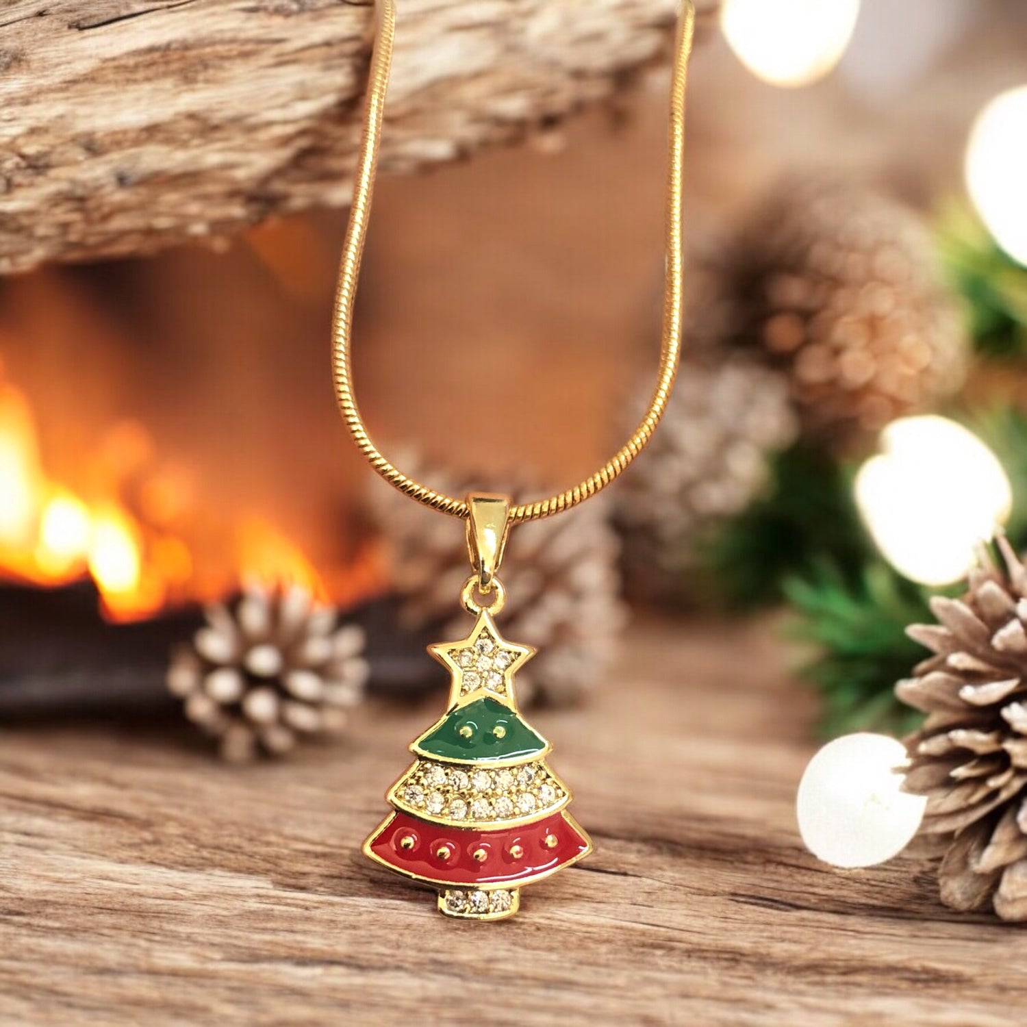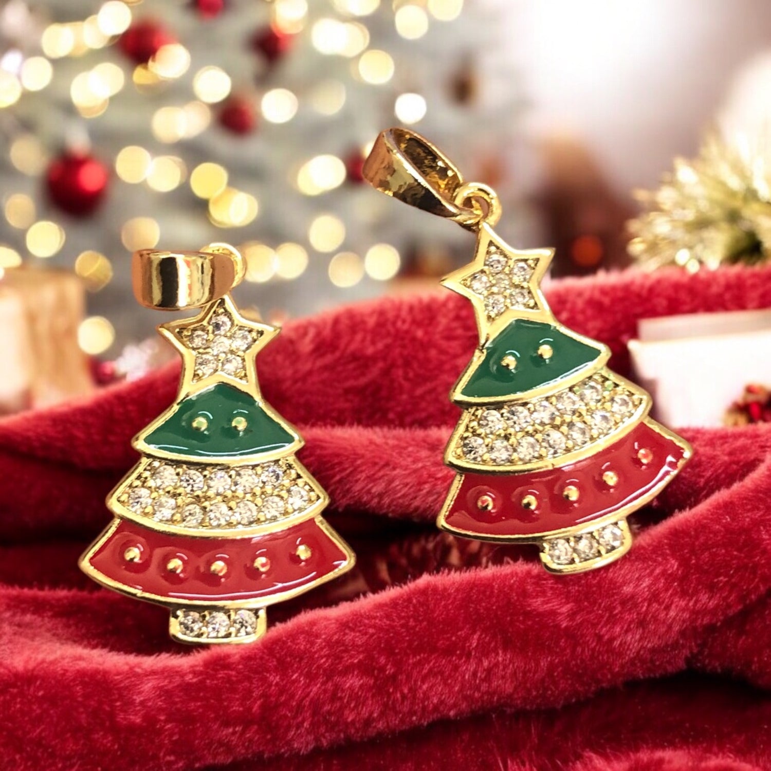 Altın Kaplama Mineli Zirkon Taşlı Mineli Yeni Yıl Aparat - Çam Ağacı Mix