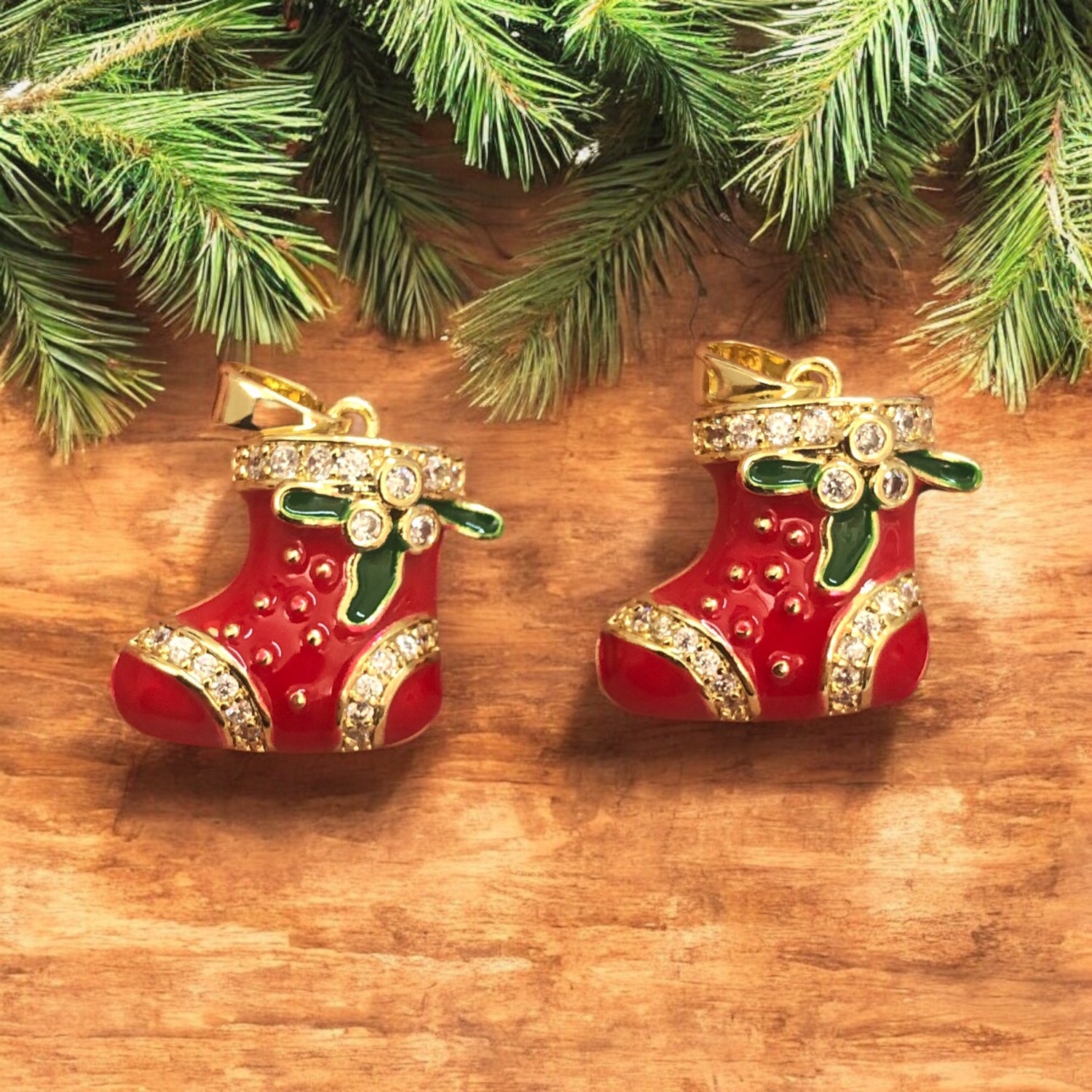 Altın Kaplama Mineli Zirkon Taşlı Mineli Yeni Yıl Aparat - Çorap