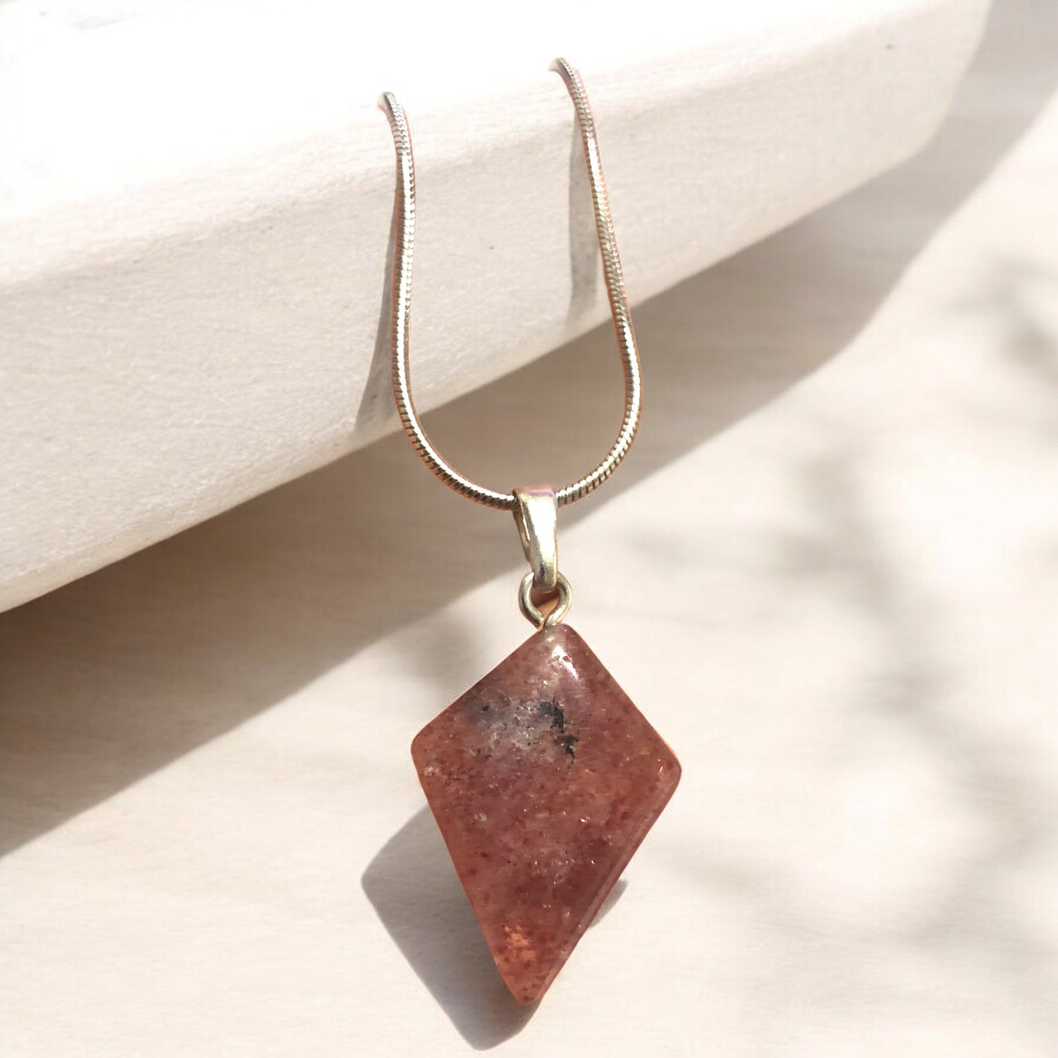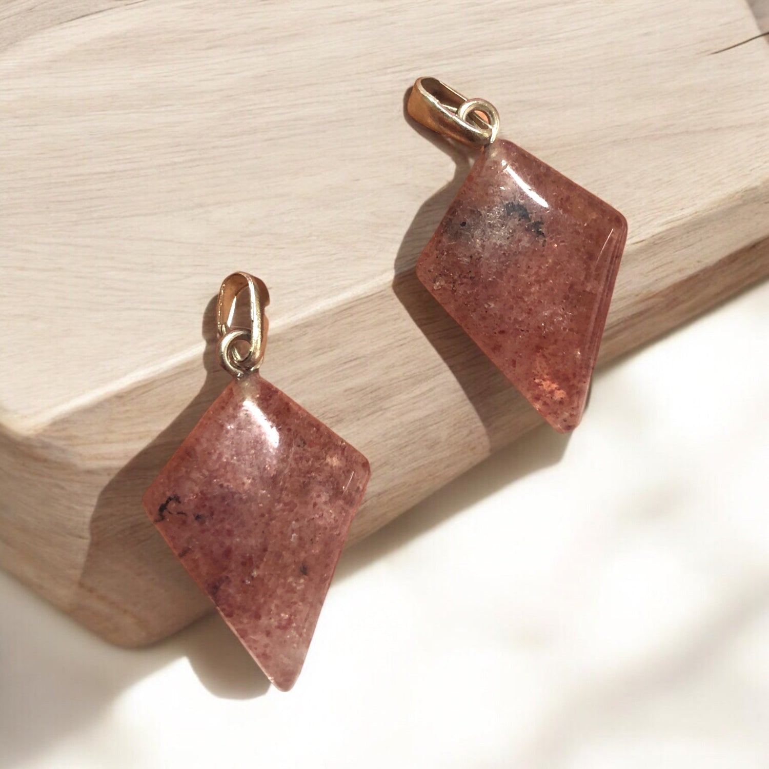 Doğal Taş Ok Ucu Model Kolye Ucu - Cherry Kuvars (Çilek Kuvars)
