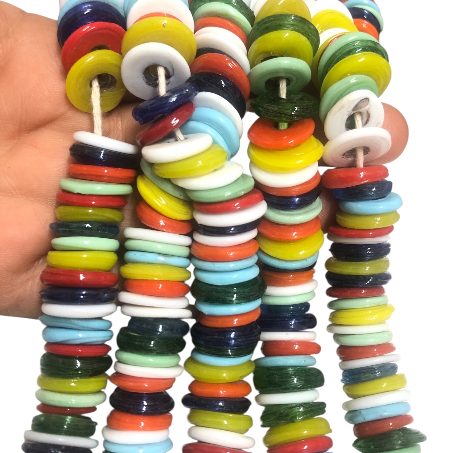 El yapımı Cam Ocak Boncuğu Rondel Orta Boy -Mix