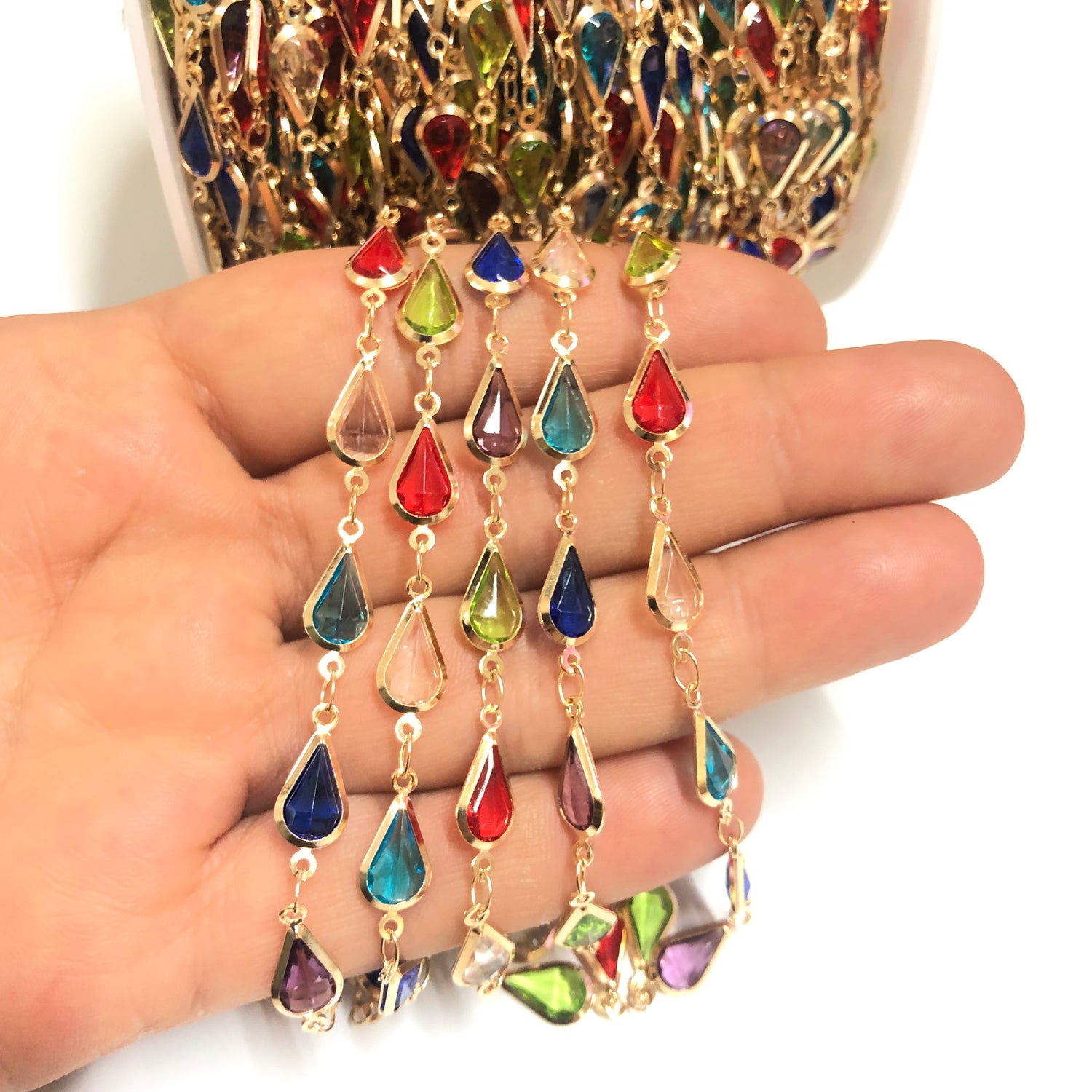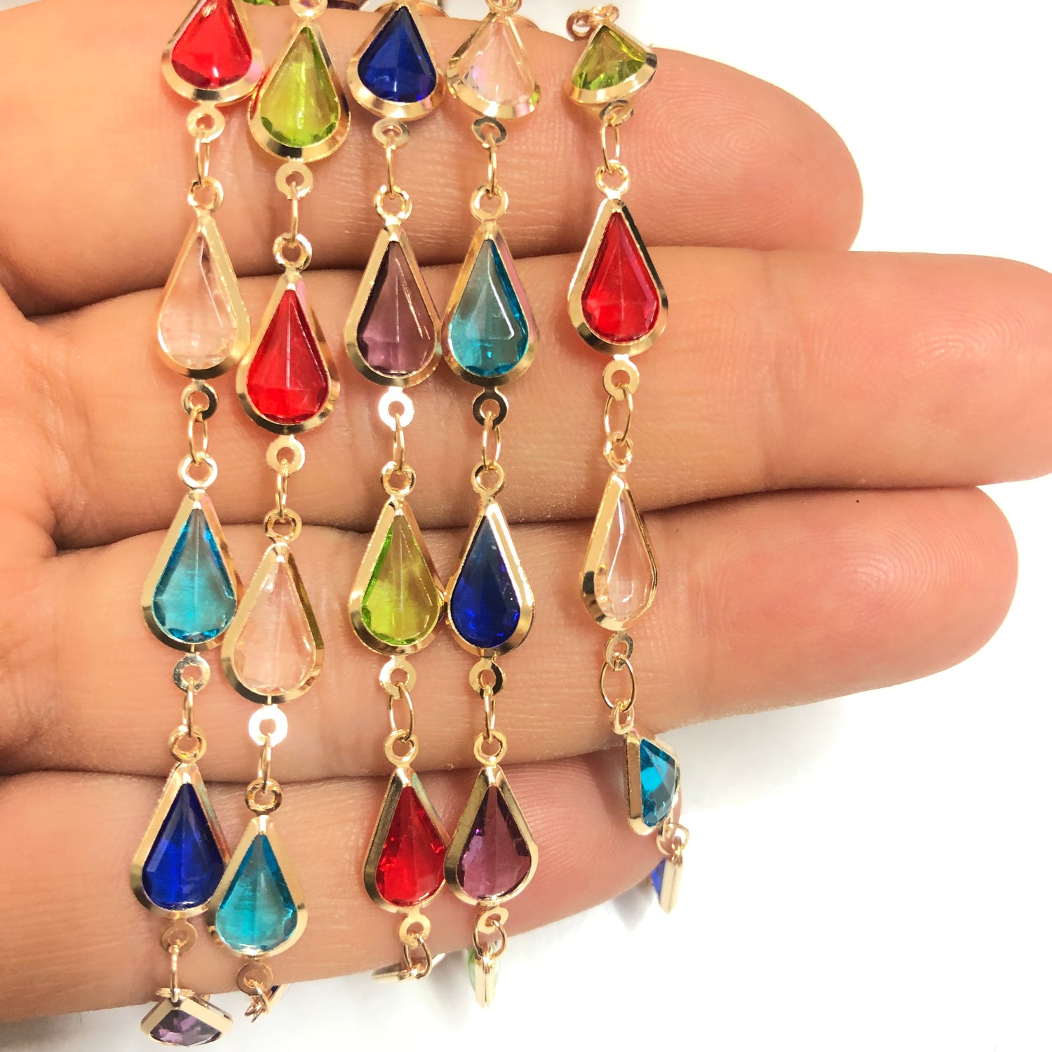 Altın Kaplama Damla Taşlı Zincir - Mix