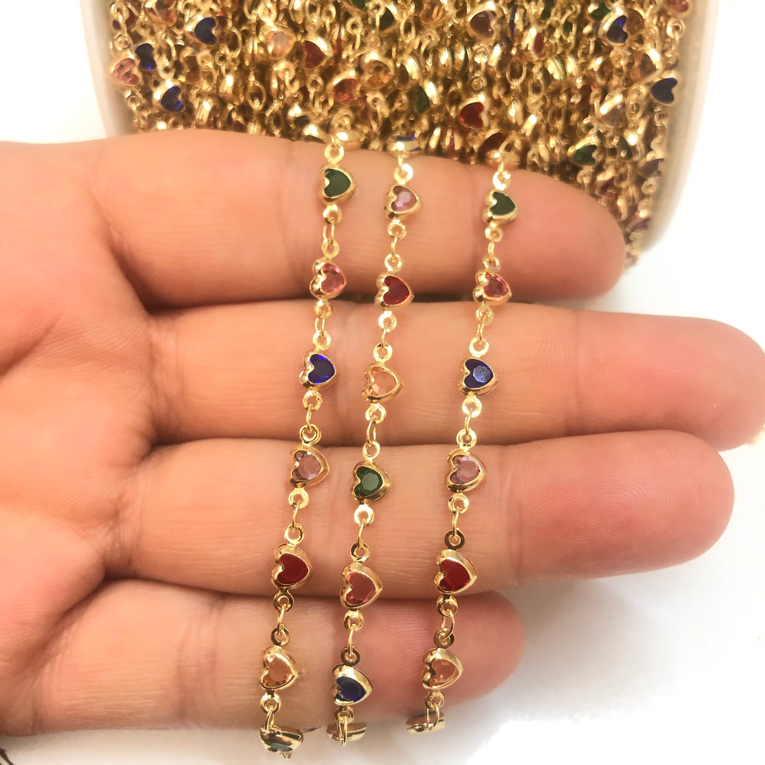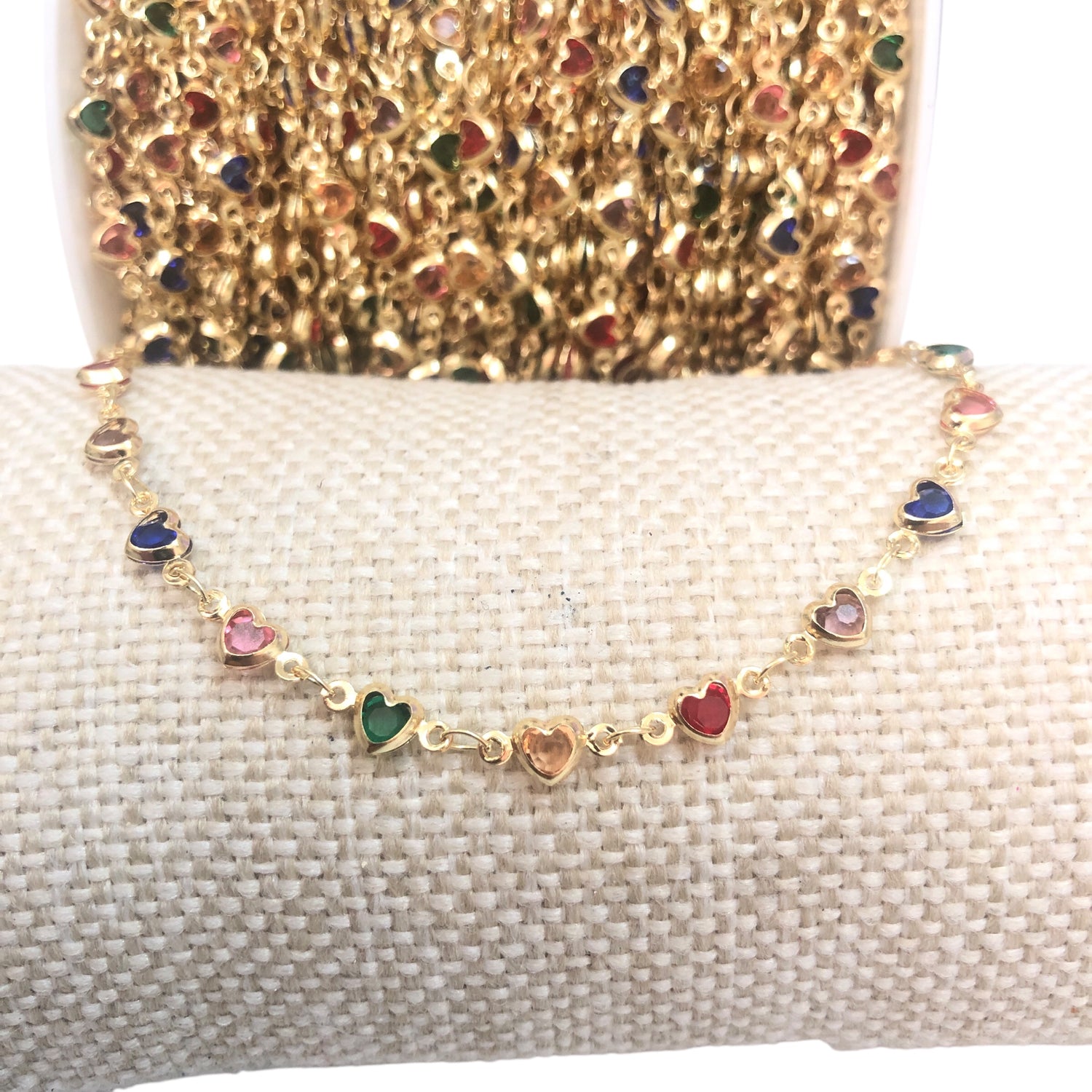 Altın Kaplama Kalp Taşlı Zincir Yan Delikli -Mini Mix