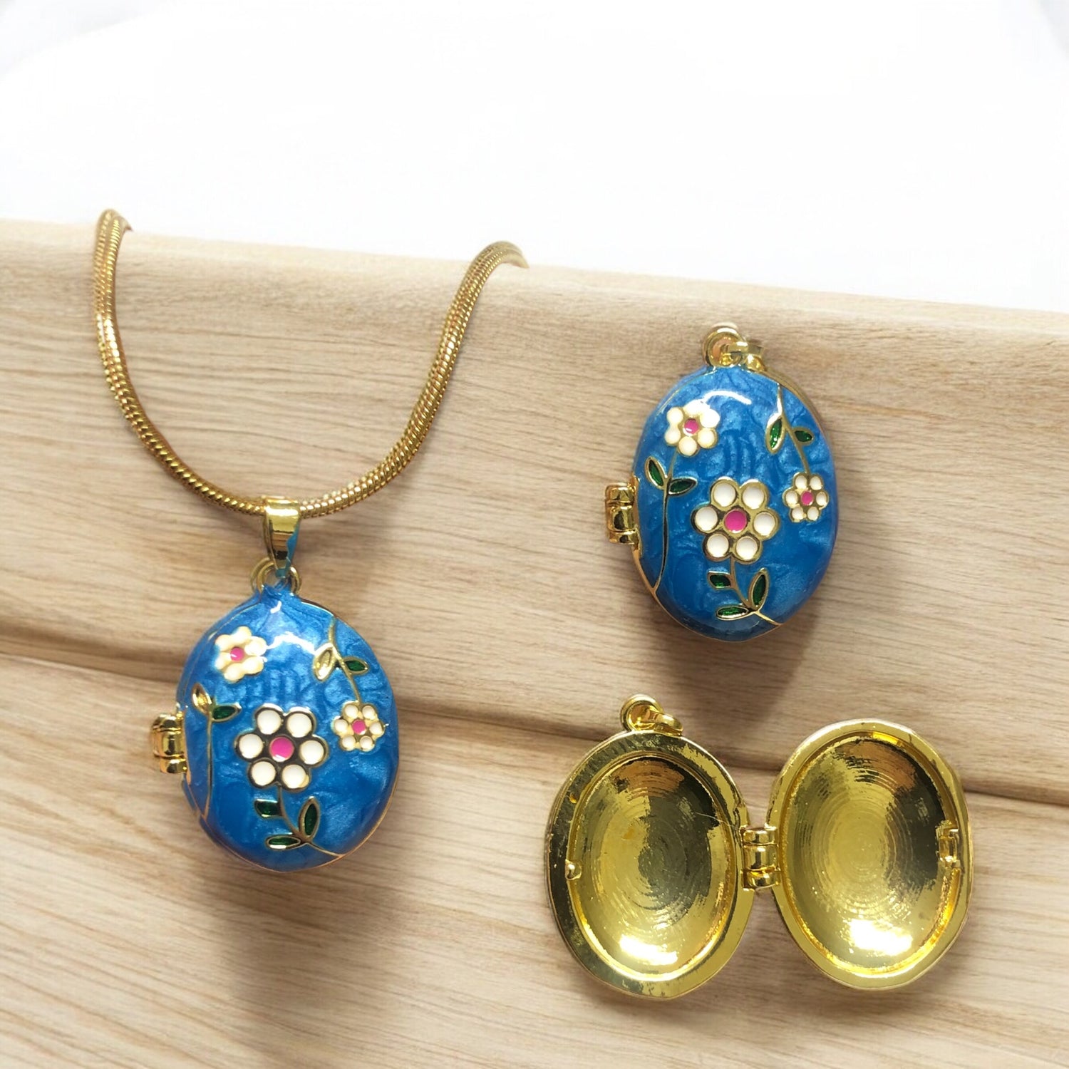 Altın Kaplama Mineli Açılabilir Kolye Ucu Oval -Mavi Papatya
