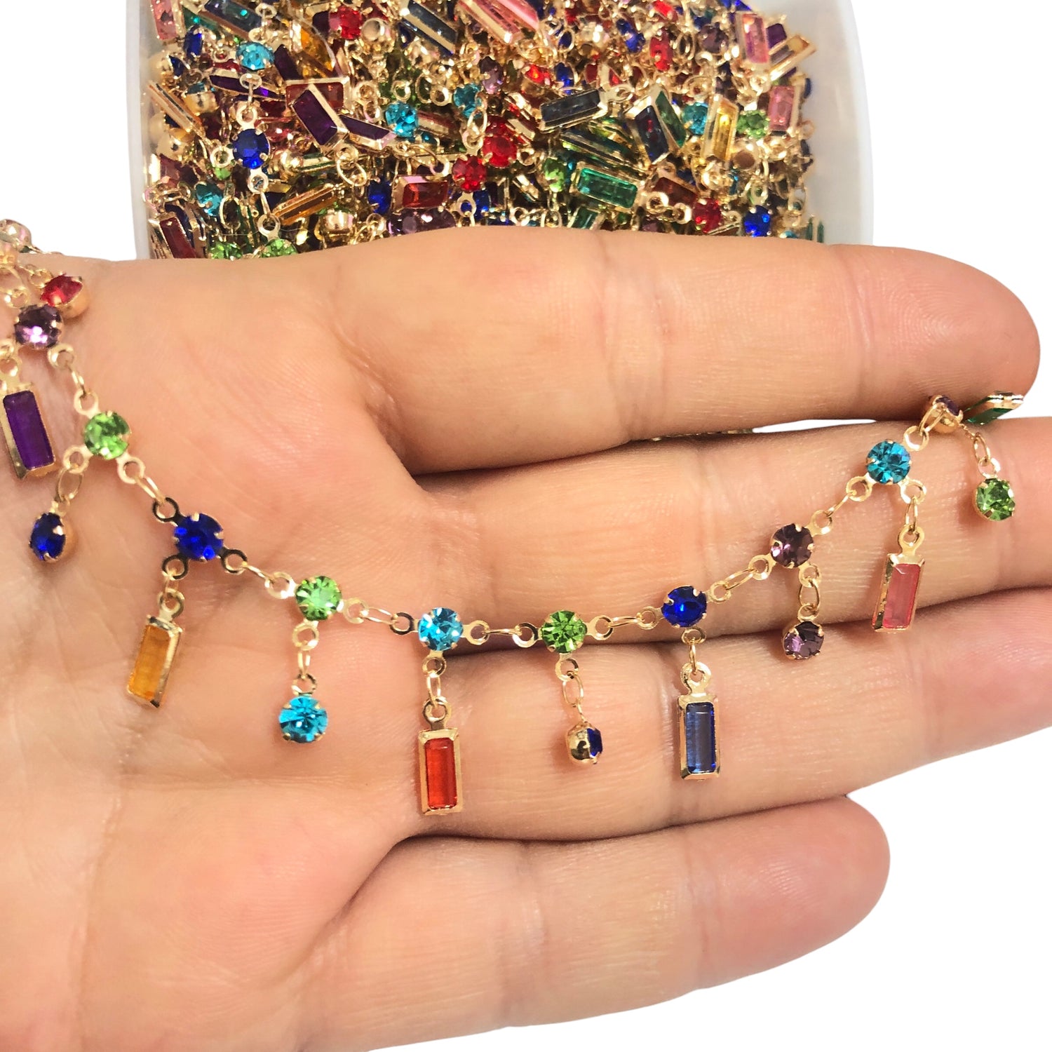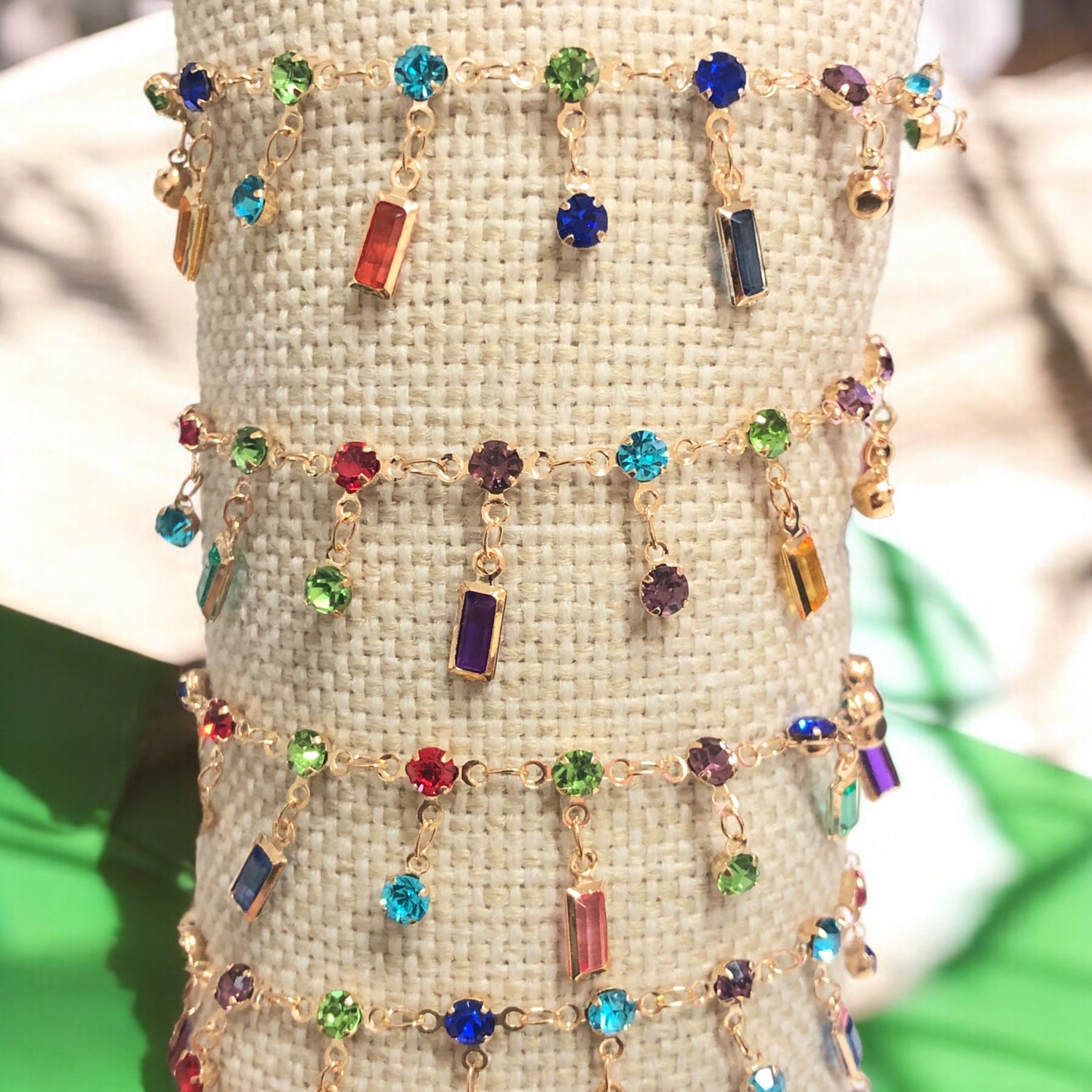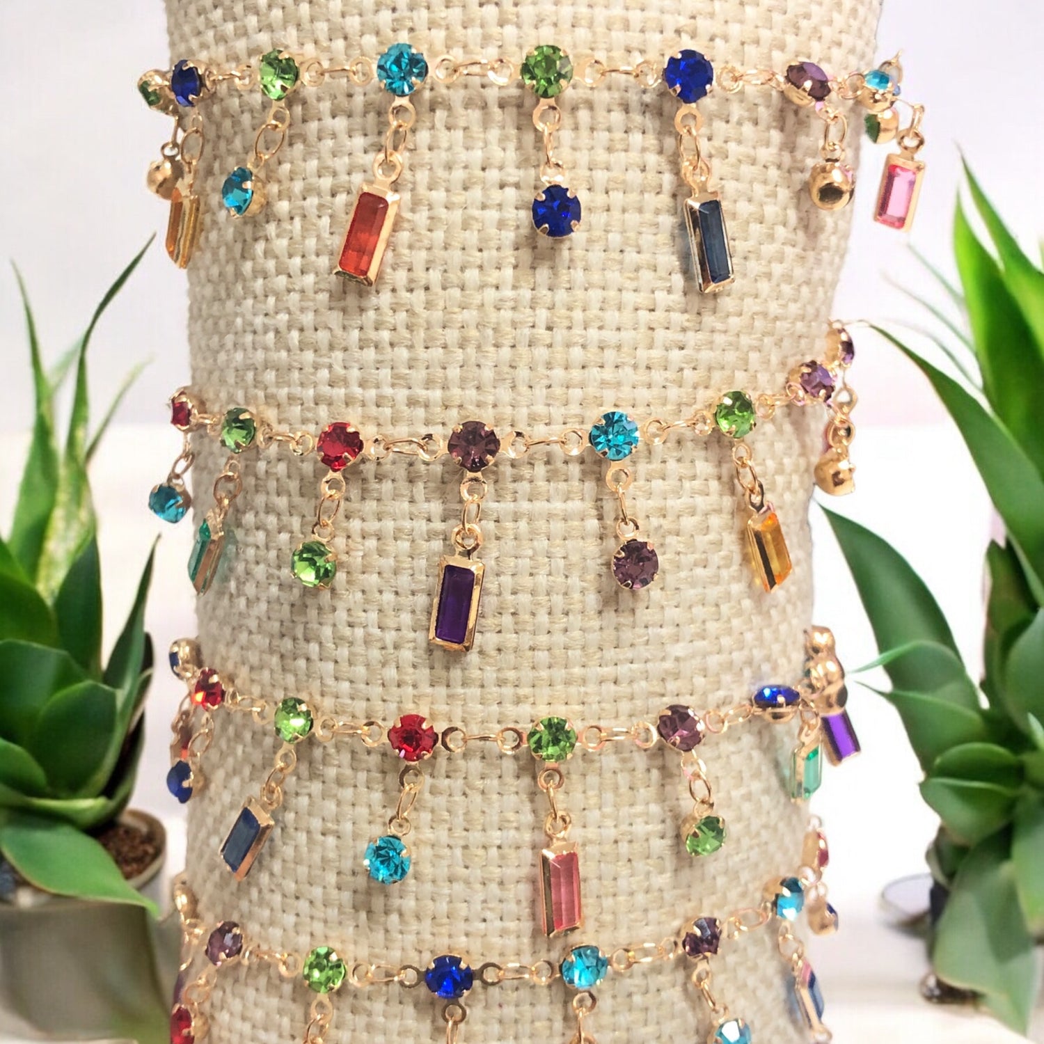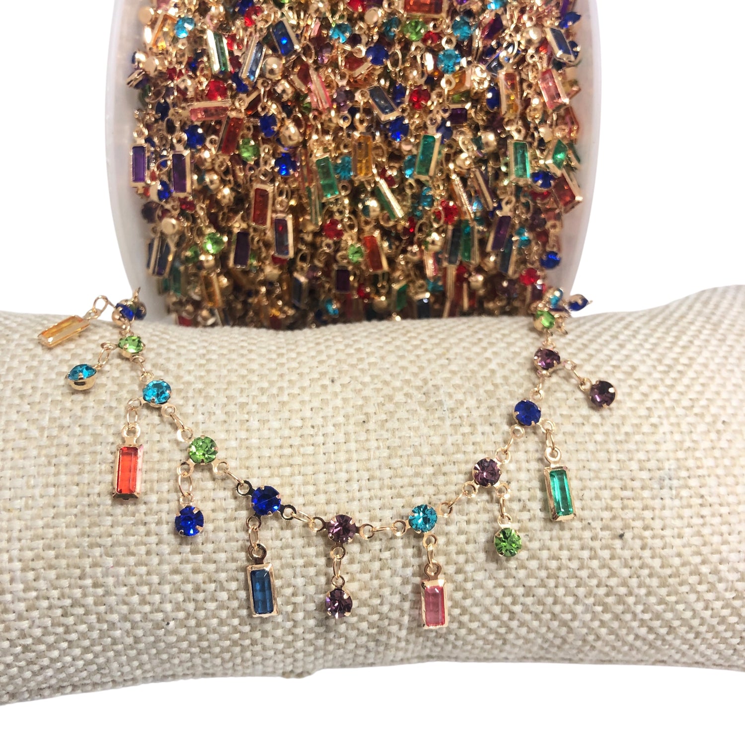 Altın Kaplama Sallantı Baget Taşlı Zincir - Mix