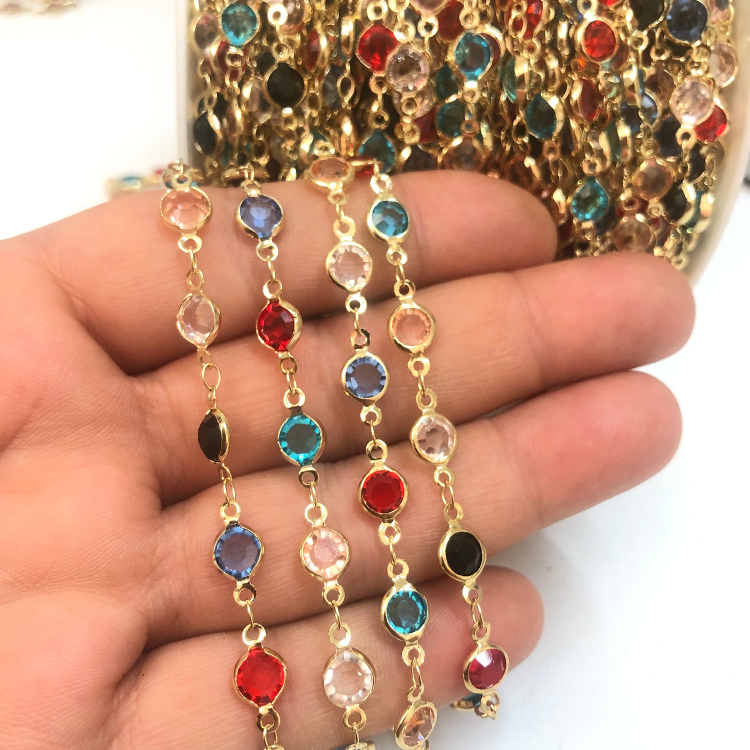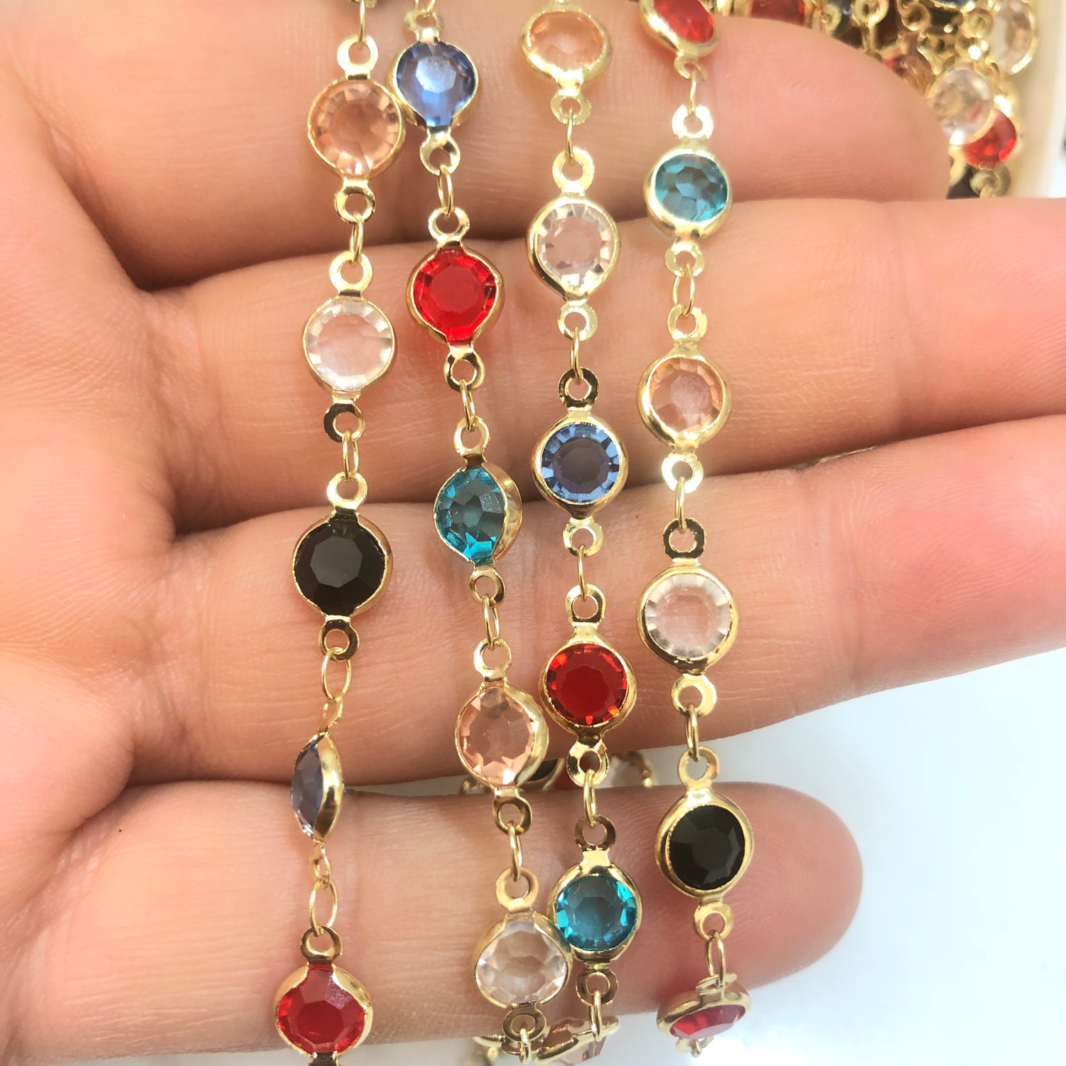 Altın Kaplama Yuvarlak Taşlı Zincir - Mix