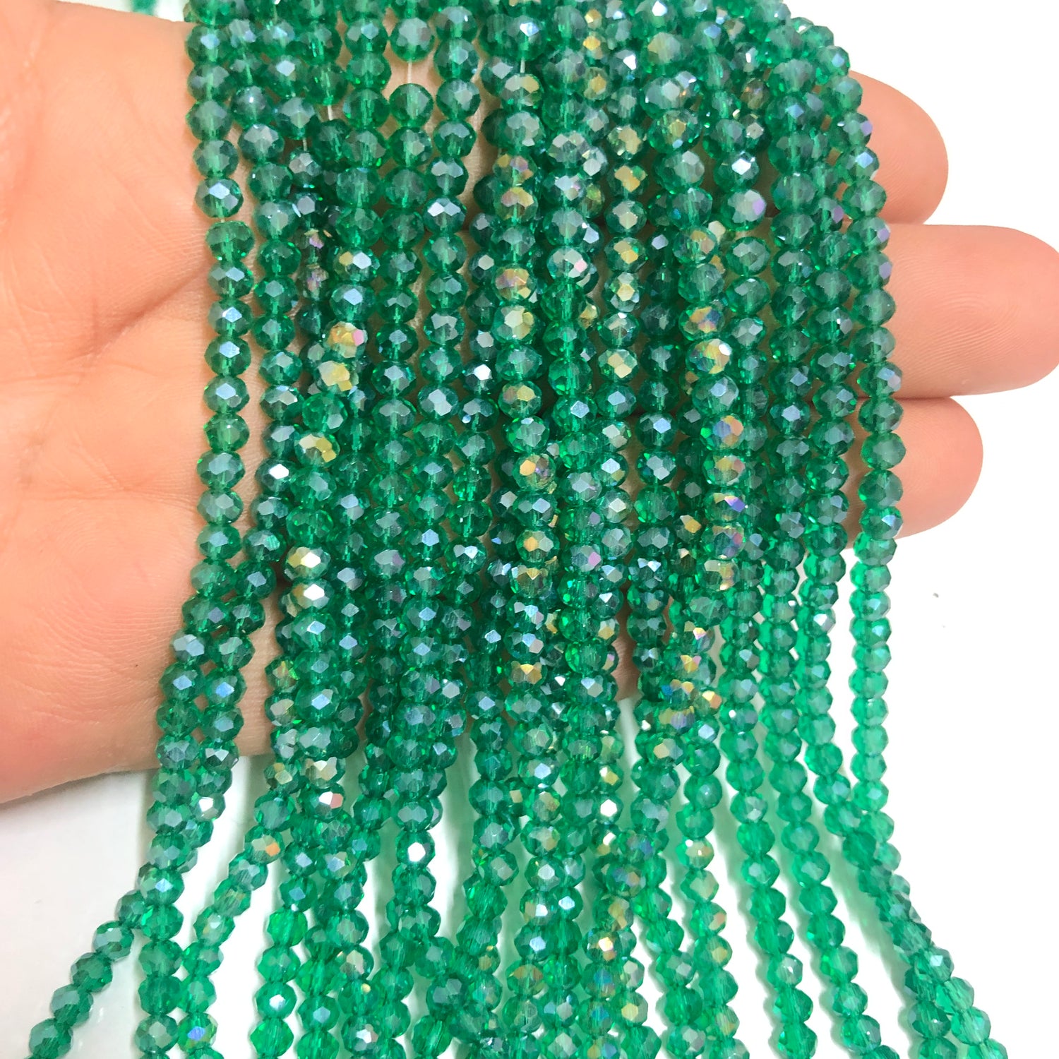 Kristal Boncuk, Çin Kristali-4mm - 35 - Şeffaf Janjan Turkuaz Yeşil