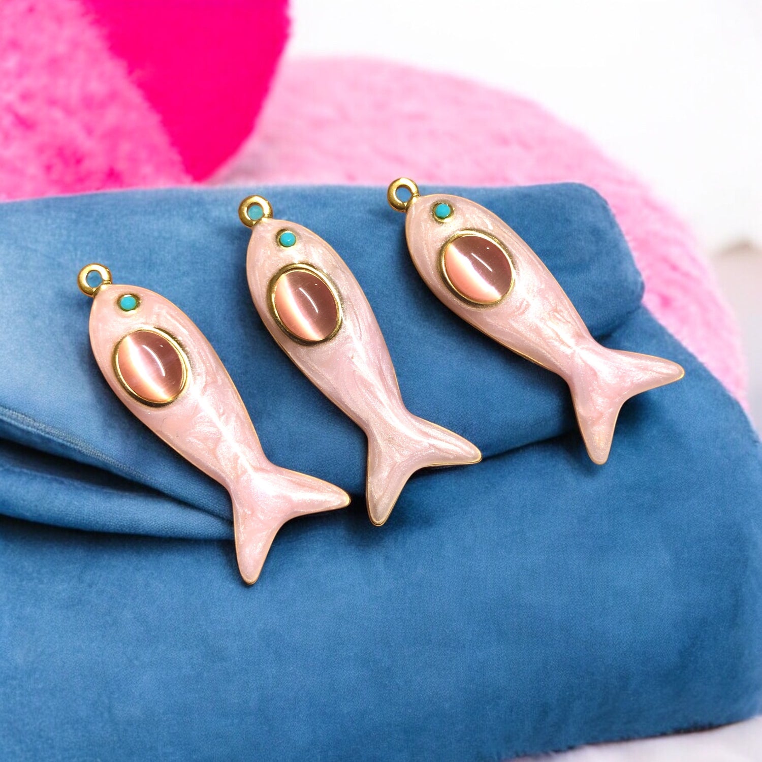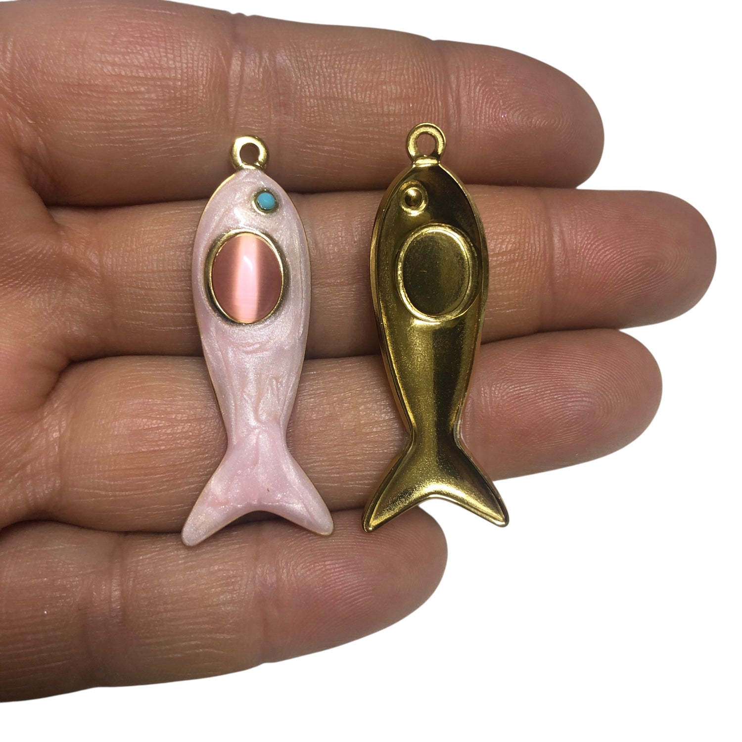 Sarı Çelik Sedefli Balık Kolye Ucu -Pembe