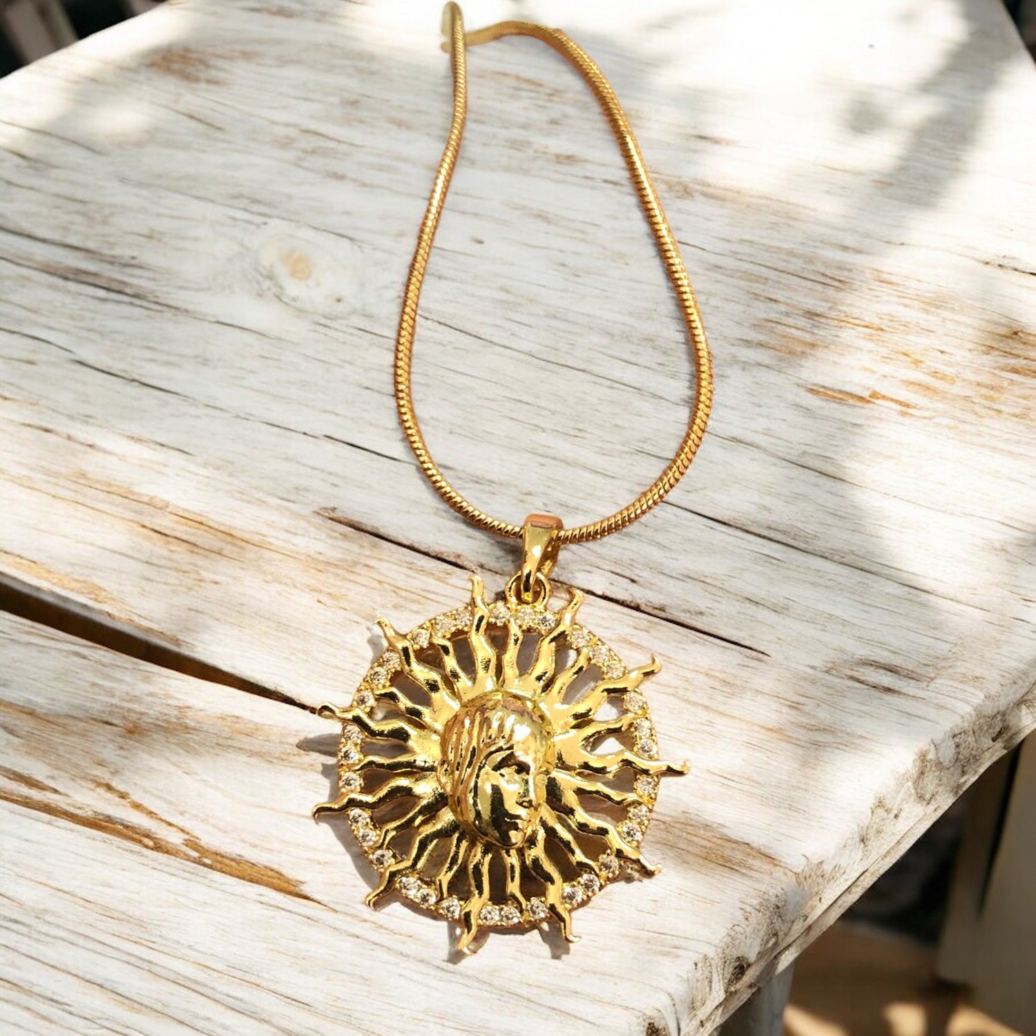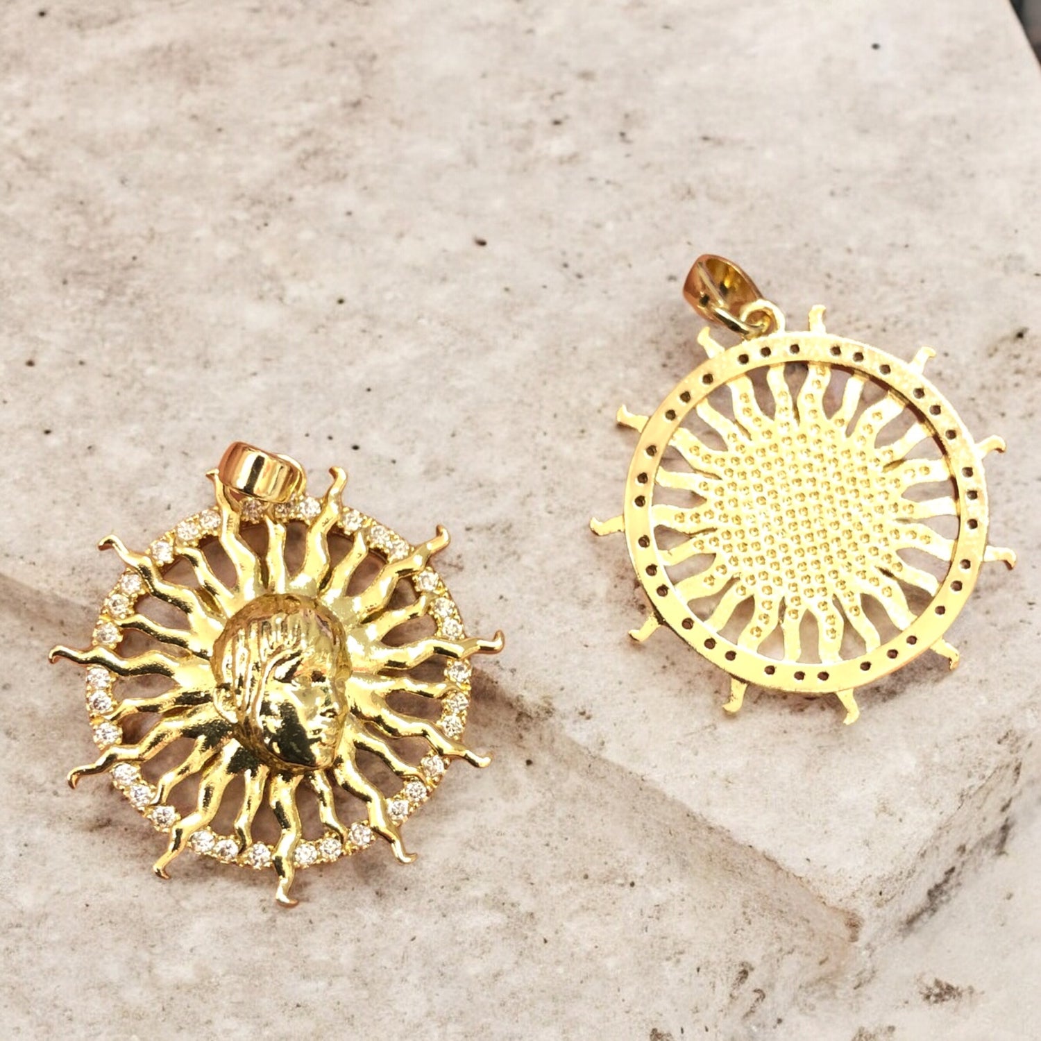 Altın Kaplama Zirkon Taşlı Güneş Kolye Ucu
