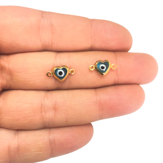 Altın Kaplama Kalp Beyaz Nazar Bileklik Aparatı Yan Delik - Mavi