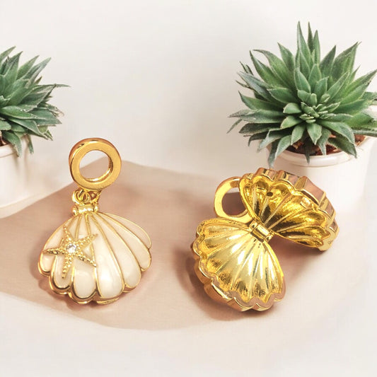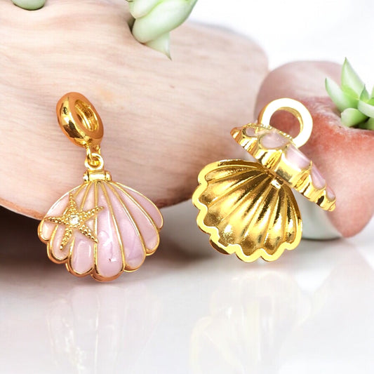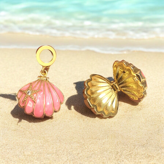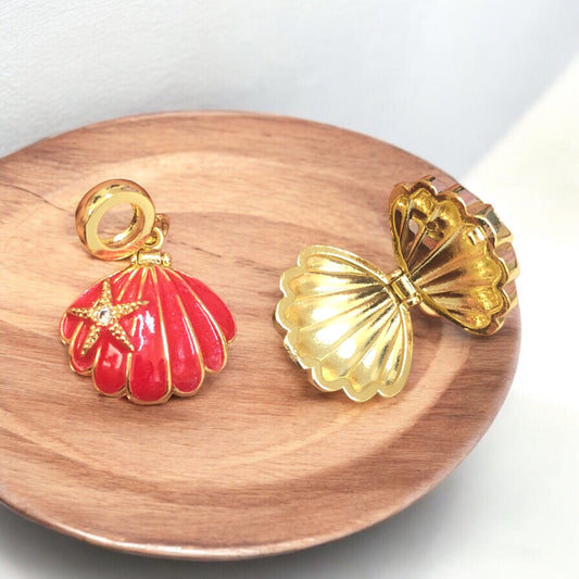 Altın Kaplama Üç Boyutlu Zirkon Taşlı Mineli İstiridye Kolye Ucu-Kırmızı