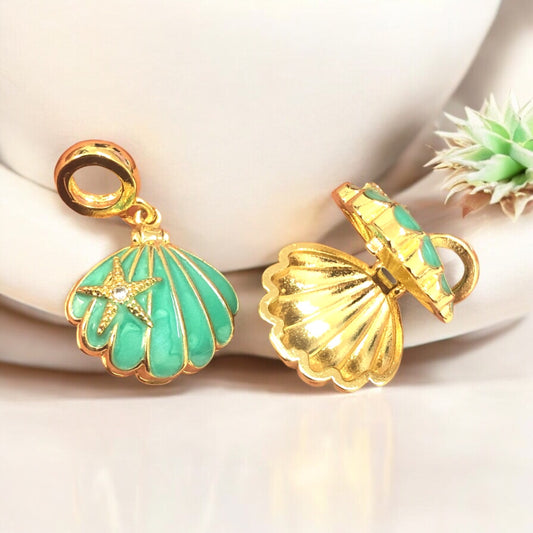 Altın Kaplama Üç Boyutlu Zirkon Taşlı Mineli İstiridye Kolye Ucu-Turkuaz
