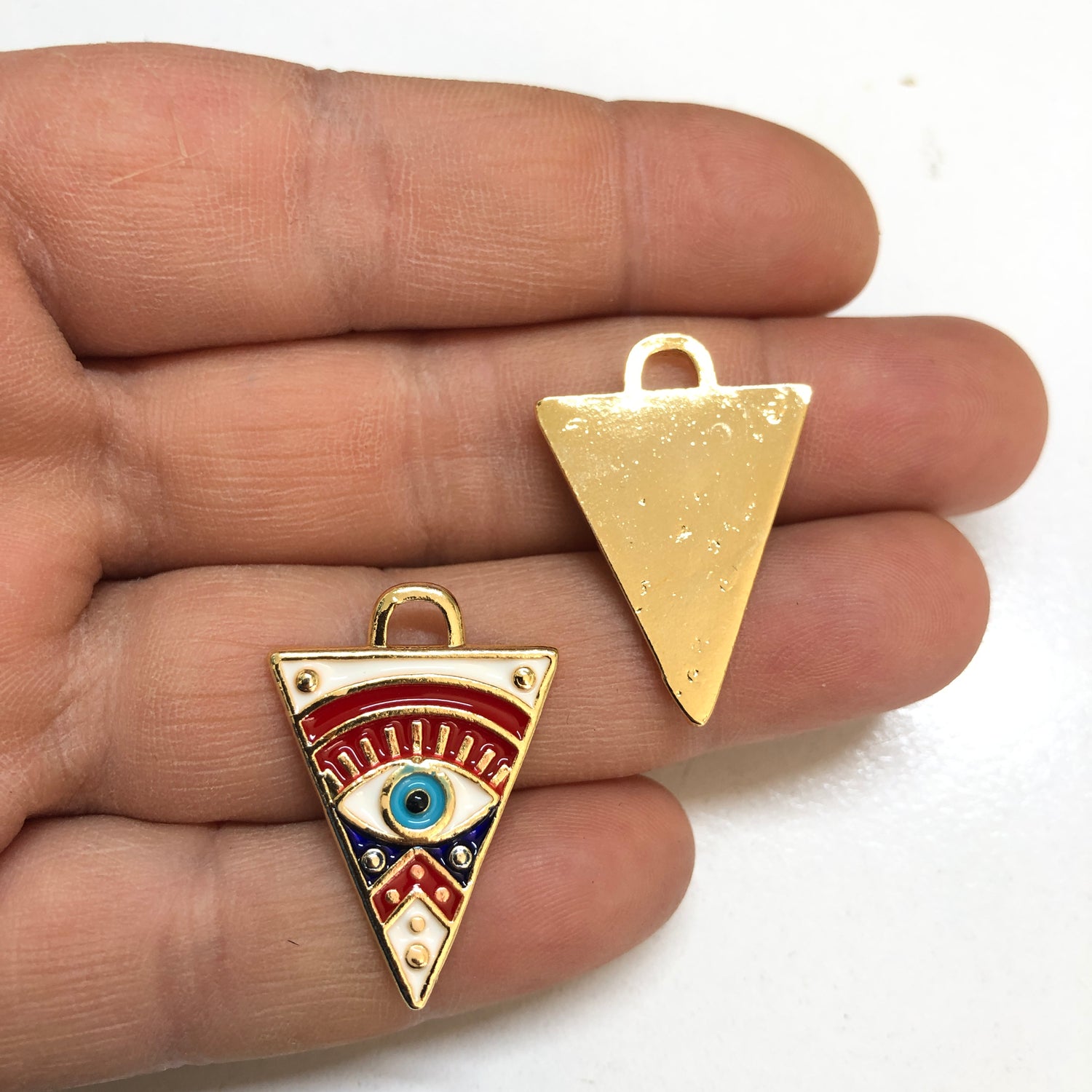 Altın Kaplama Mineli Üçgen Kolye Ucu -Kırmızı