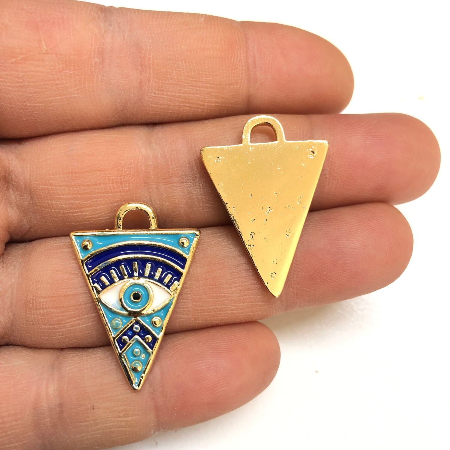Altın Kaplama Mineli Üçgen Kolye Ucu -Turkuaz