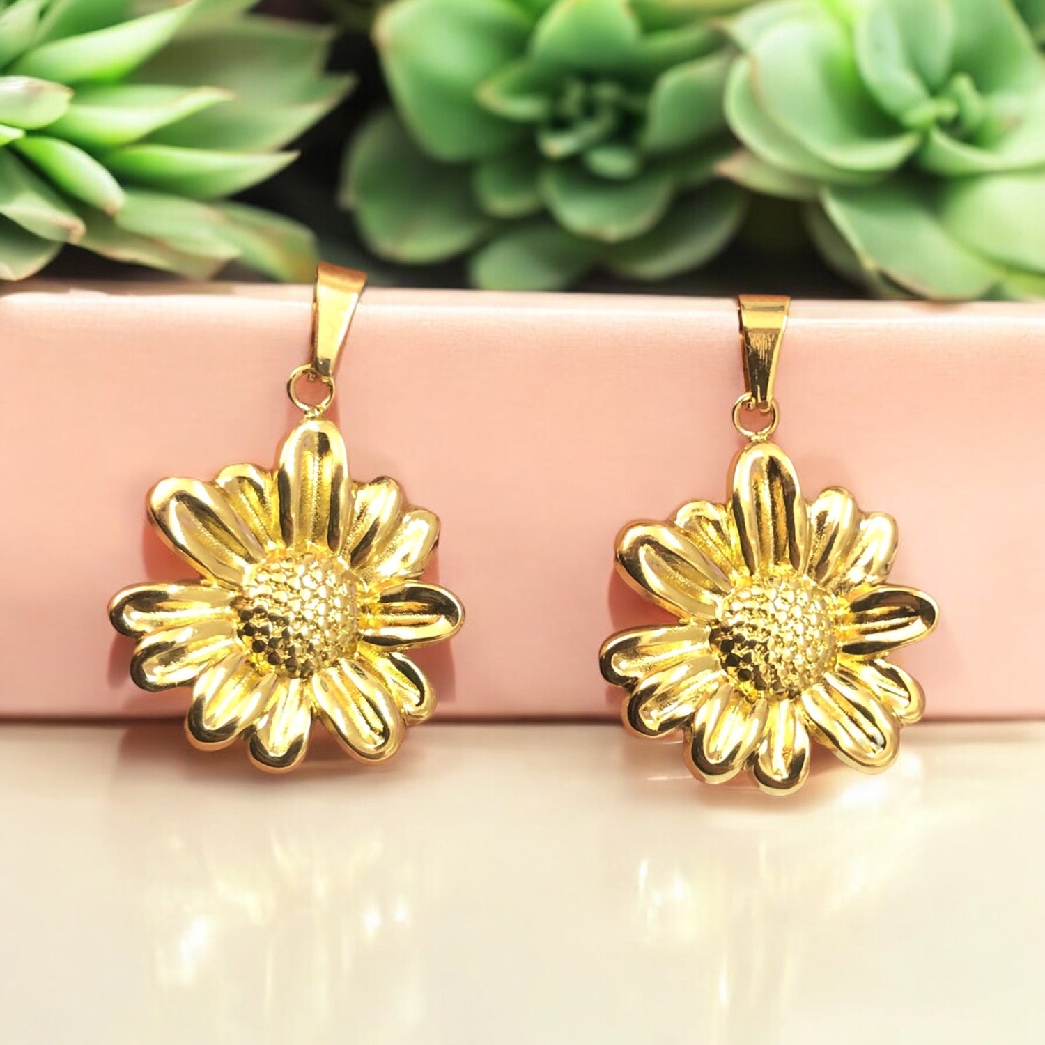 Sarı Çelik Çiçek Kolye Ucu 19mm