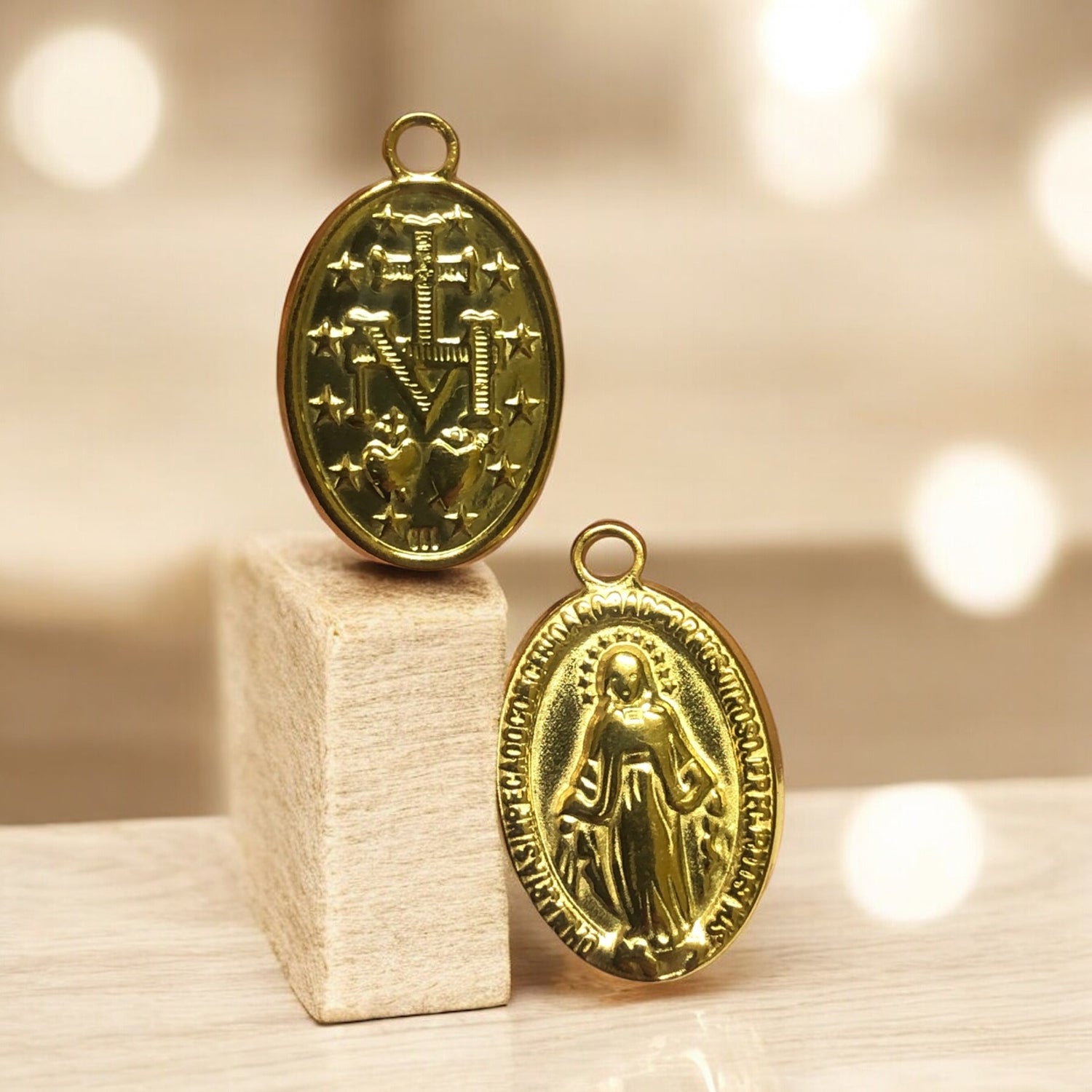Sarı Çelik -Çift taraflı İkona Kolye Ucu