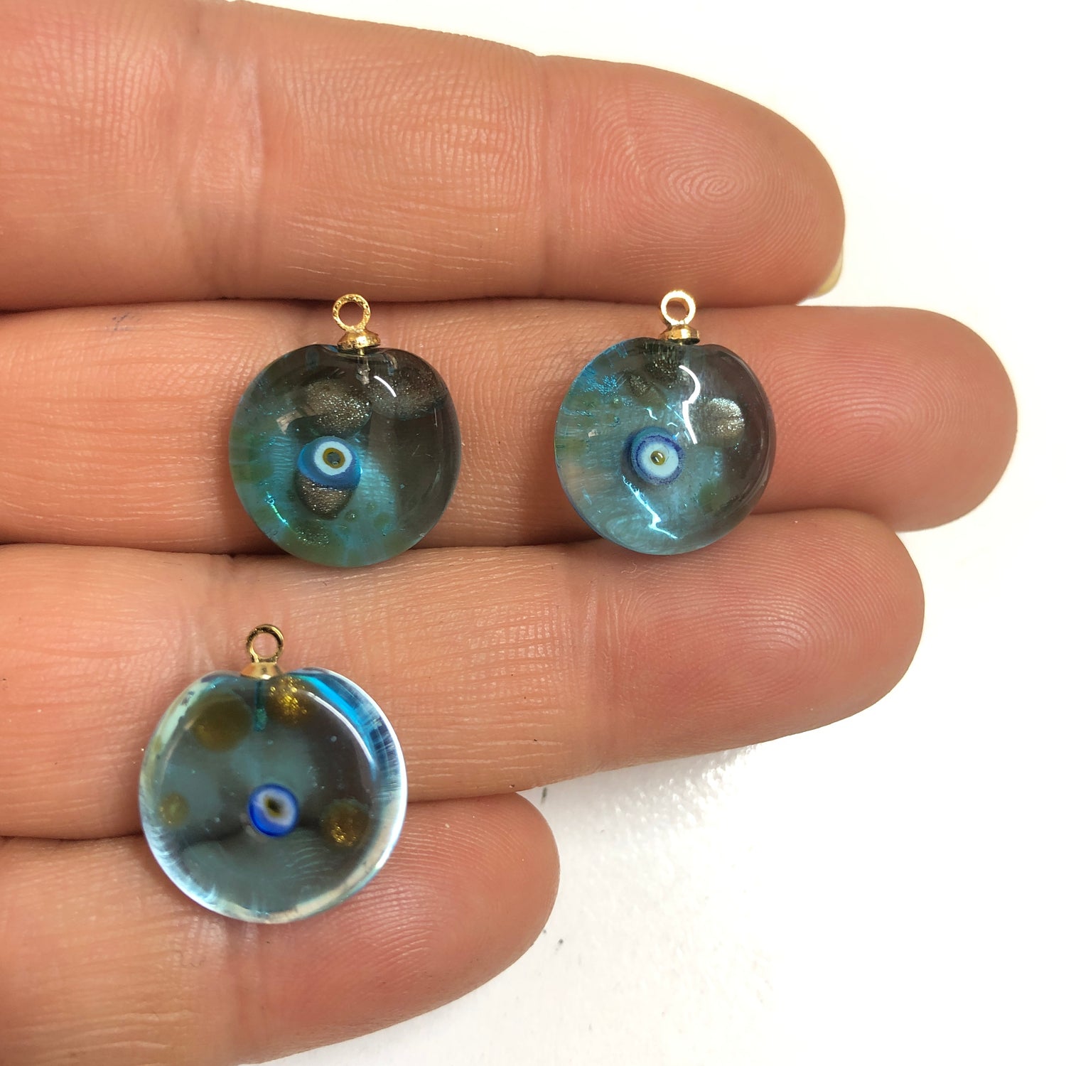 Murano Cam Simli Yuvarlak Nazar Kolye- Şeffaf Mavi