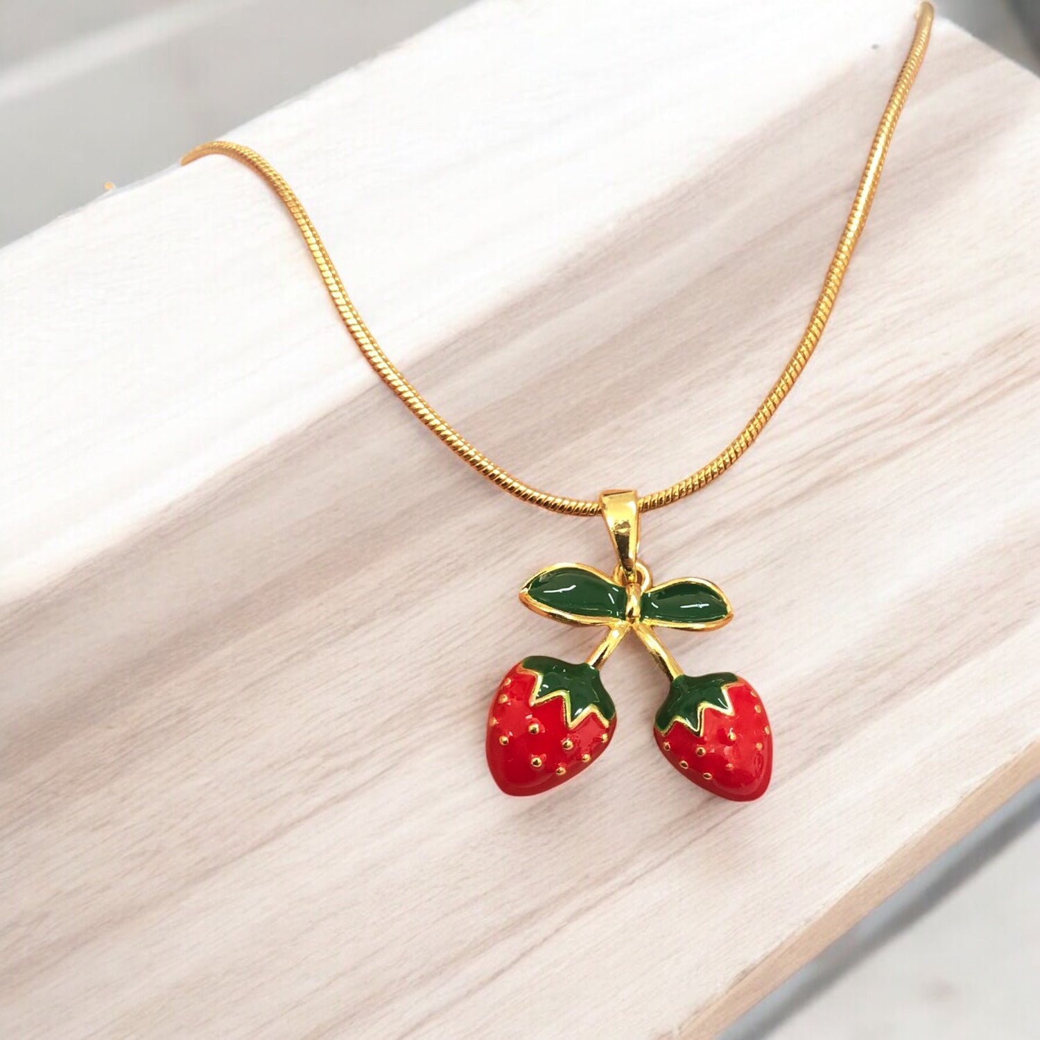 Altın Kaplama Mineli Çilek Kolye Ucu