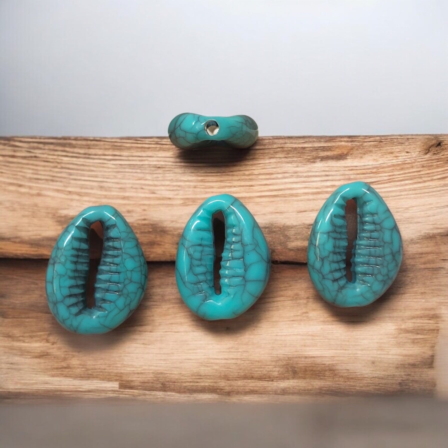Akrilik Deniz Kabuğu Delikli Turkuaz Desen