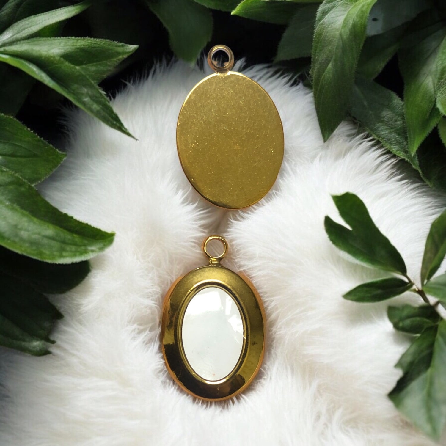 Sarı Çelik Sedef Taşlı Oval Kolye Ucu