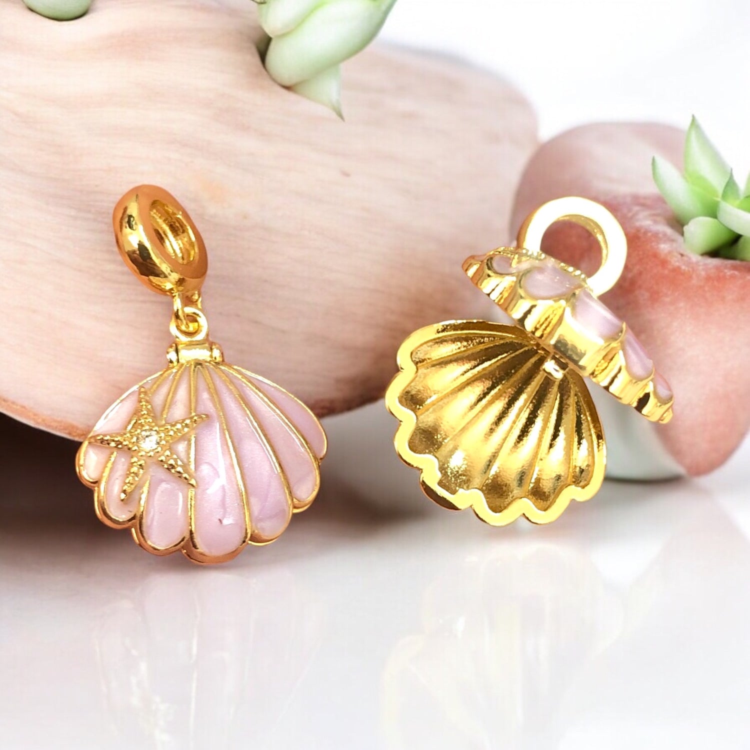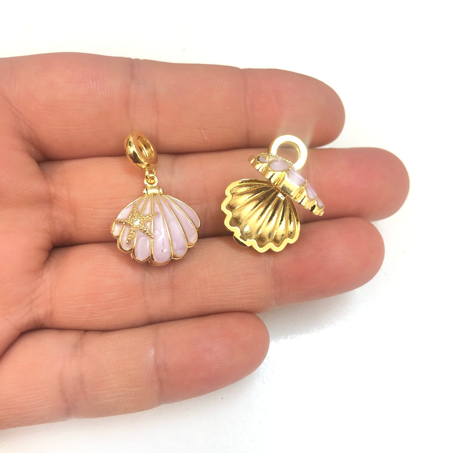 Altın Kaplama Üç Boyutlu Zirkon Taşlı Mineli İstiridye Kolye Ucu-Lila