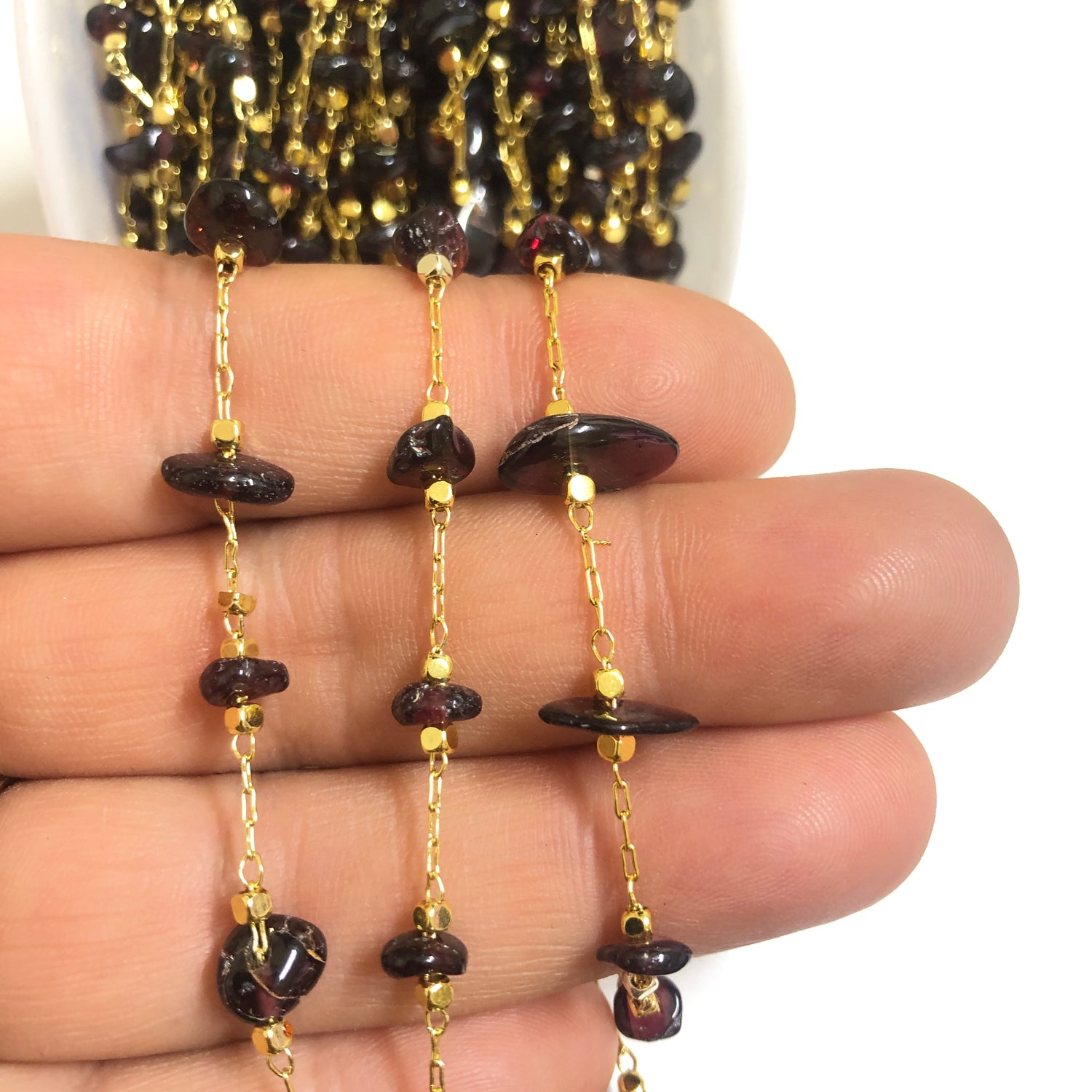 Altın Kaplama Doğaltaşlı Zincir - Granat (Lal Taşı)