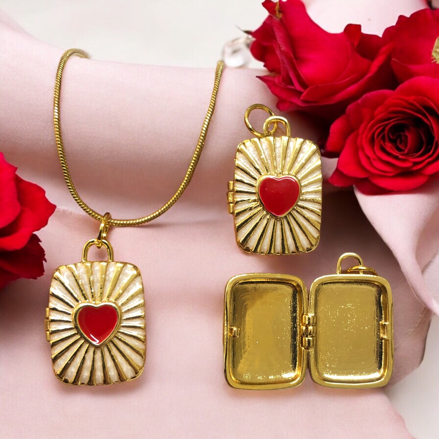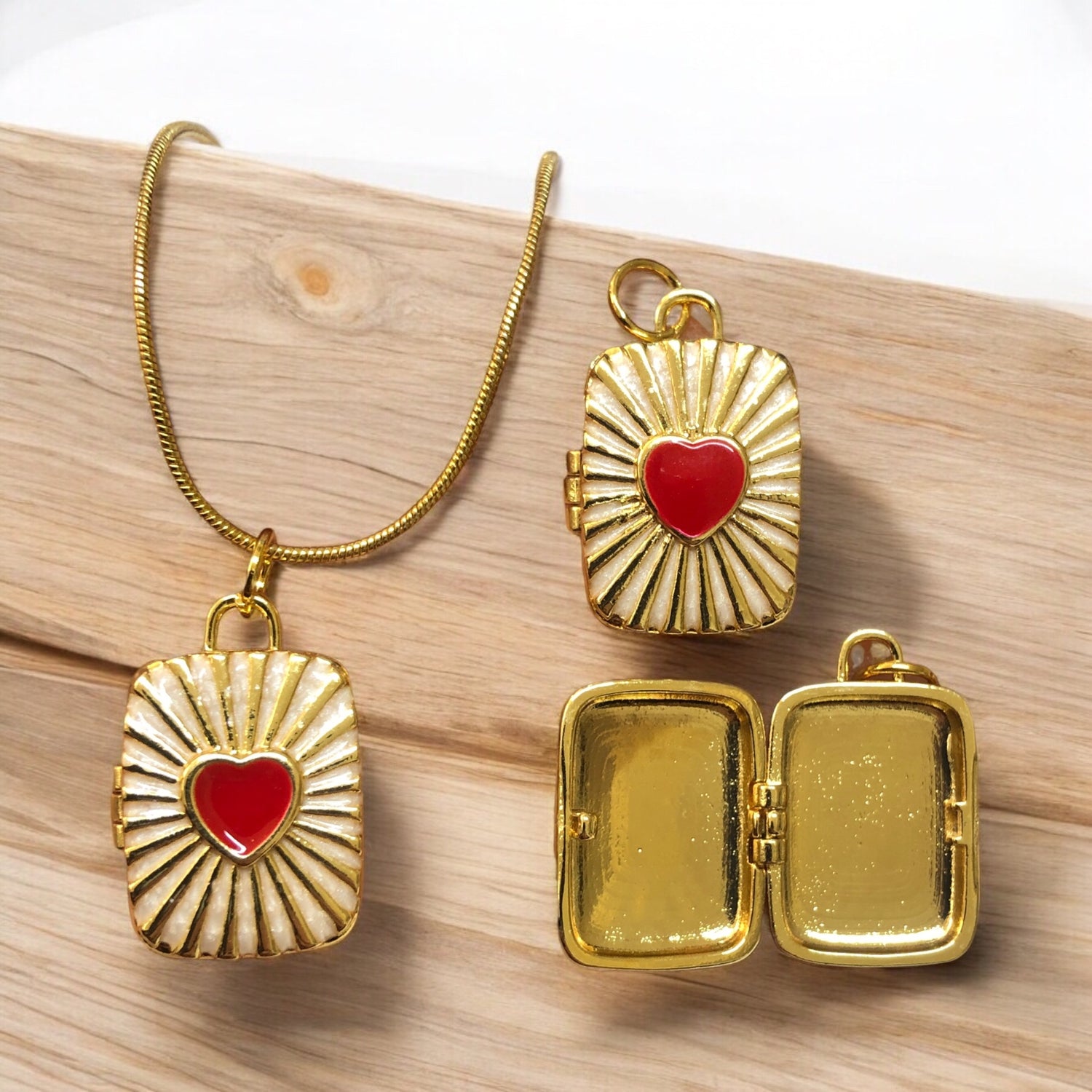 Altın Kaplama Mineli Açılabilir Kalp Kolye Ucu - Sedef