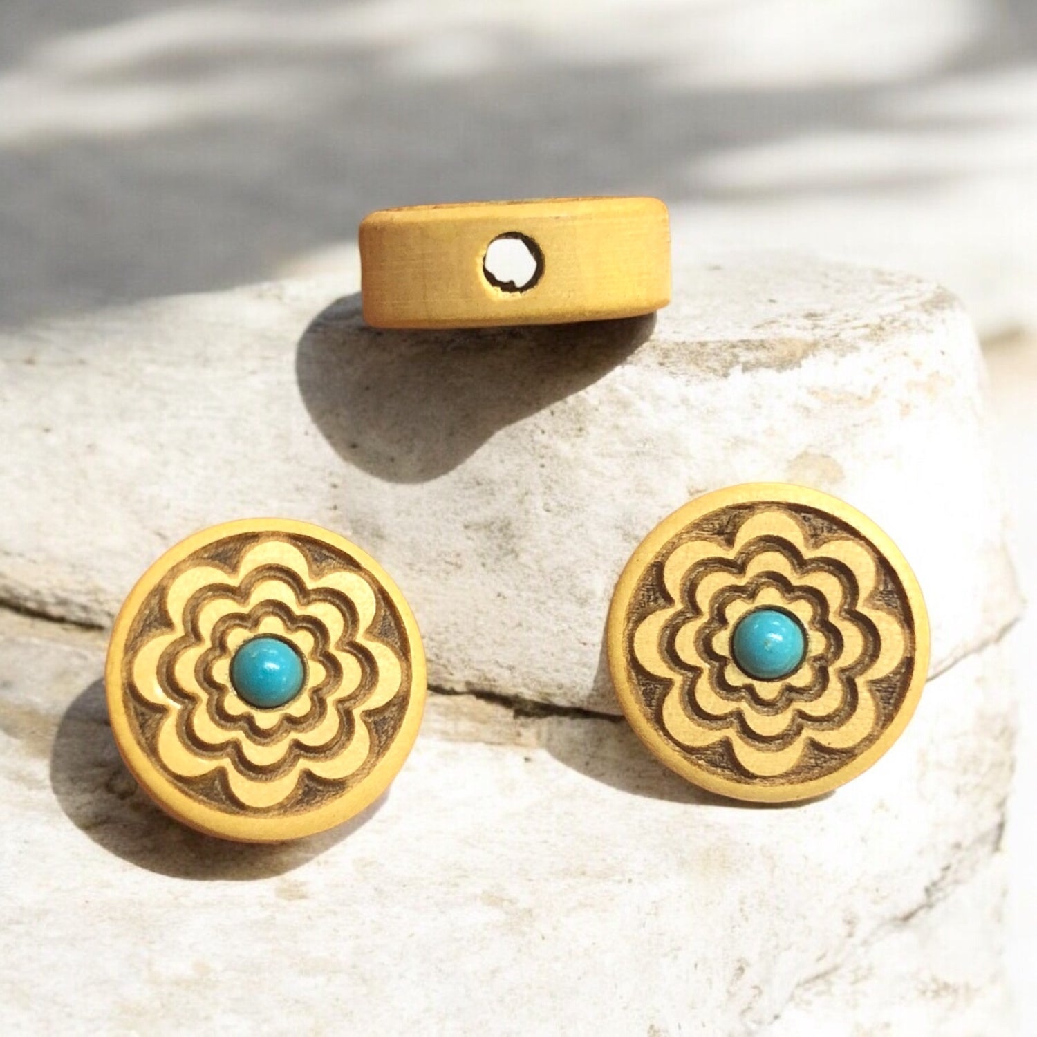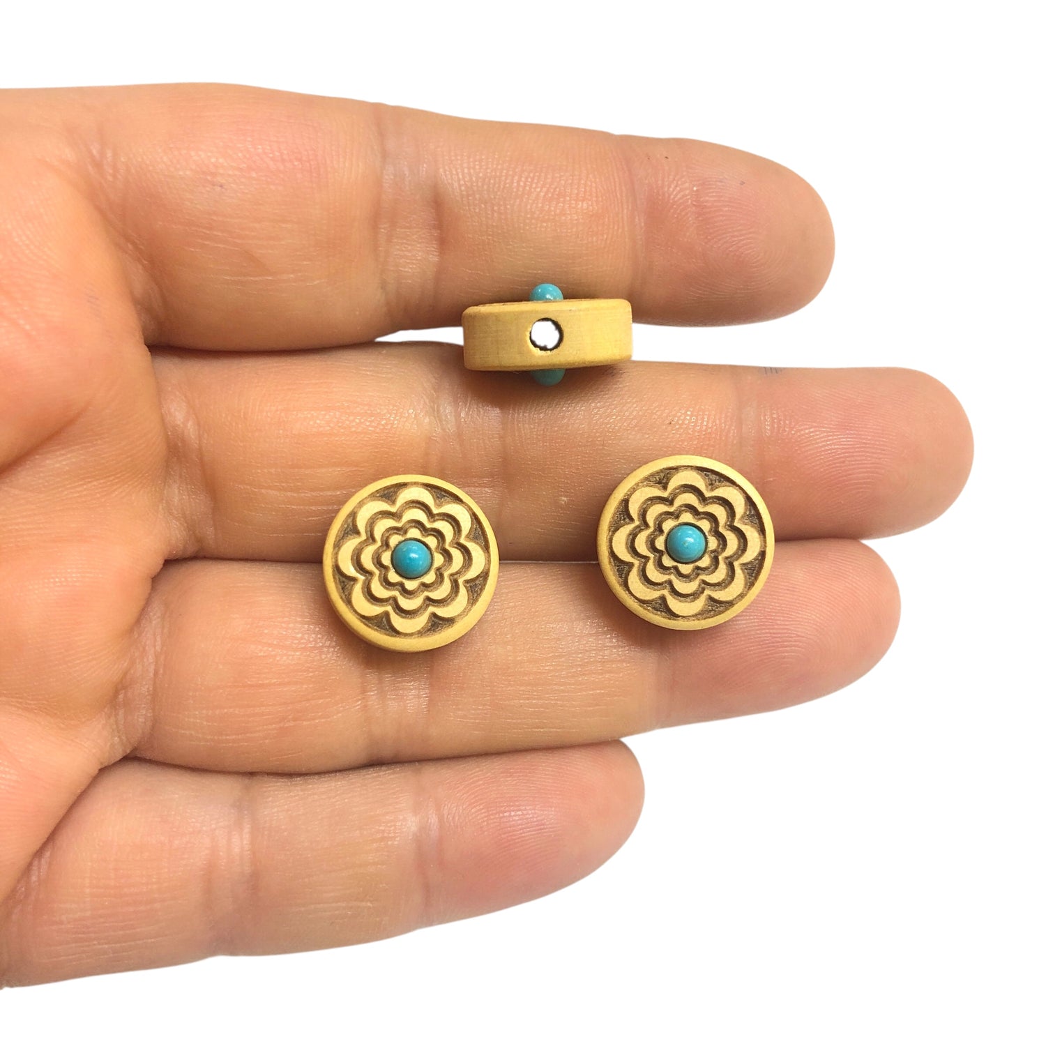 Sandal Ağacı Oyma Turkuaz Taşlı Aparat-1